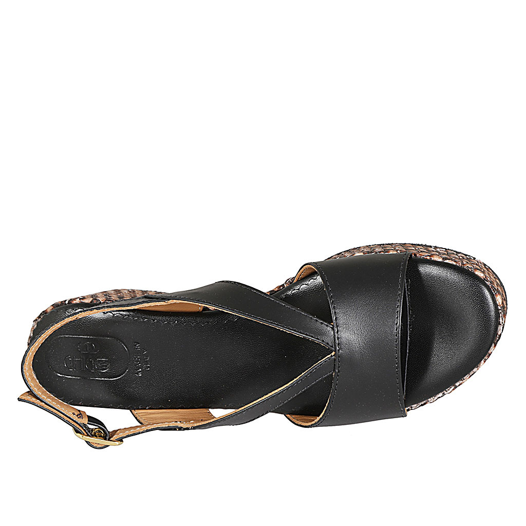 Sandalo da donna con plateau in pelle nera zeppa 6 - Misure disponibili: 31, 42