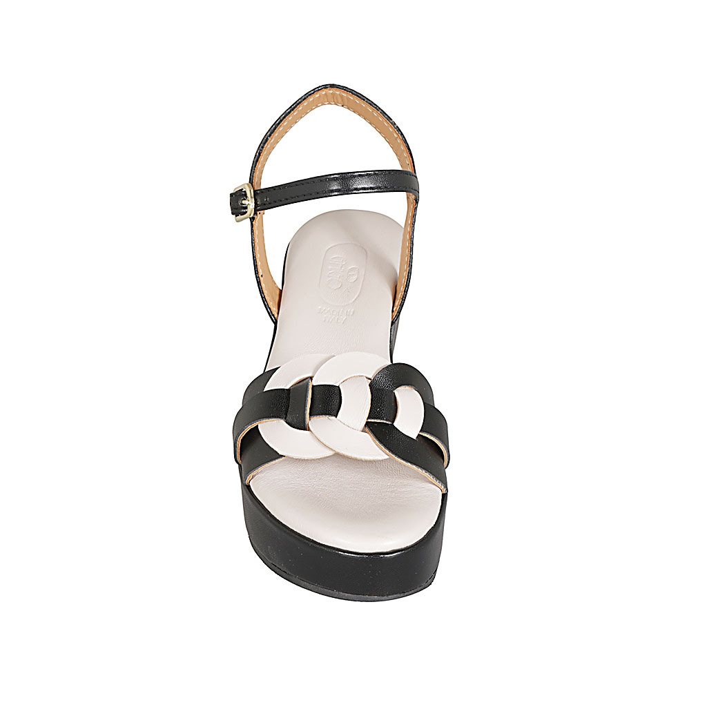 Sandalo da donna con accessorio in pelle bianca e grigia zeppa 4
