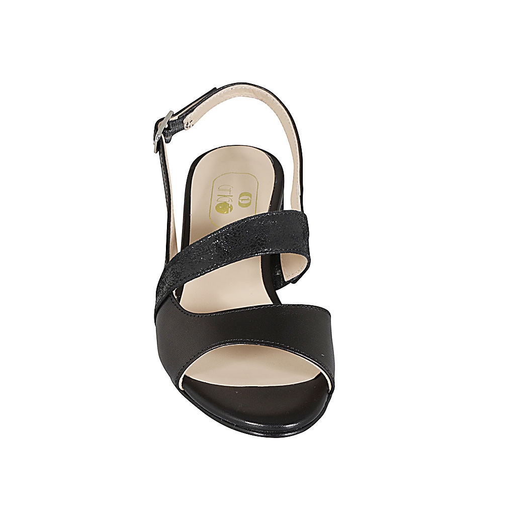 Sandalo da donna in pelle bianca e tessuto glitter platino zeppa 5