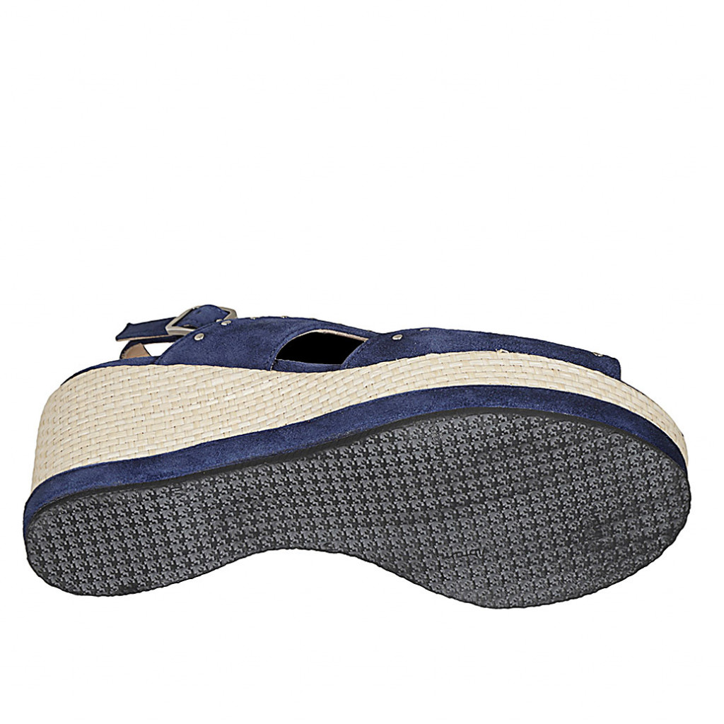 Sandalo da donna in camoscio blu con borchie, plateau e zeppa rivestita 7 - Misure disponibili: 43, 44