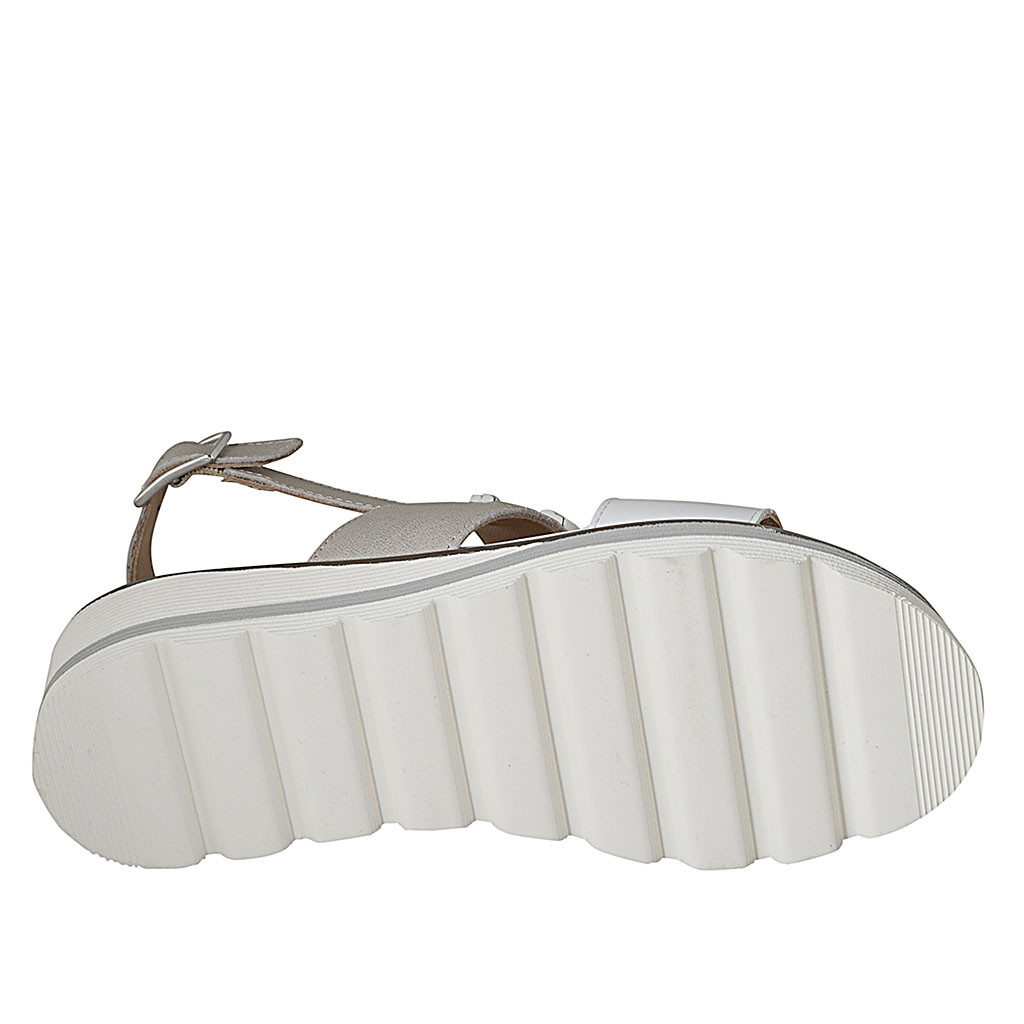 Sandalo da donna con accessorio in pelle bianca e grigia zeppa 4 - Misure disponibili: 45, 46