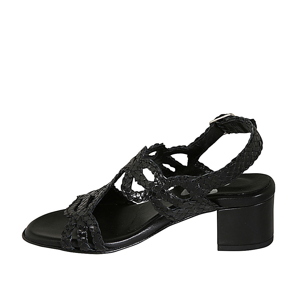 Sandalo da donna in pelle intrecciata nera tacco 5