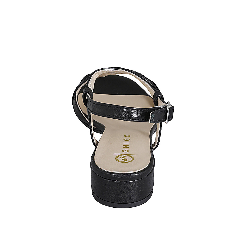 Sandalo da donna in pelle intrecciata nera tacco 3