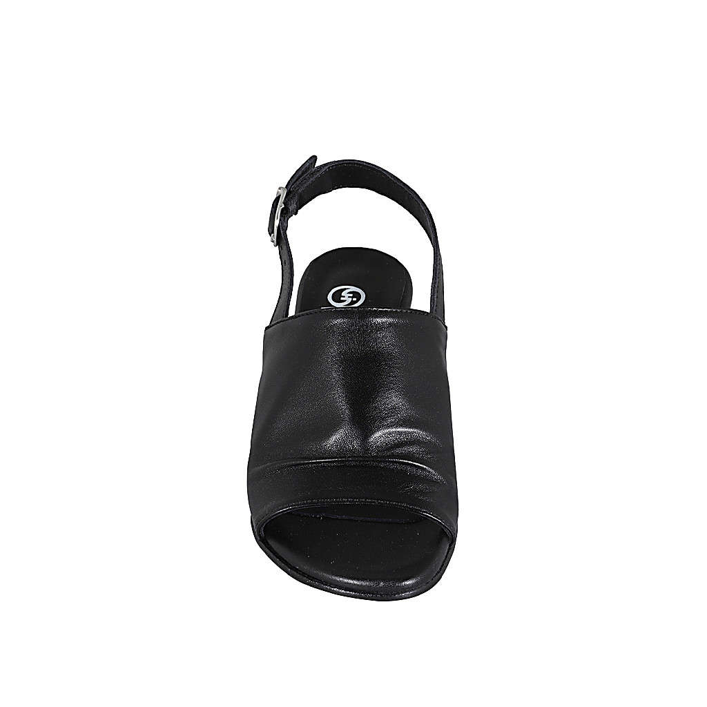 Sandalo da donna in pelle nera con velcro, perline e strass zeppa 2