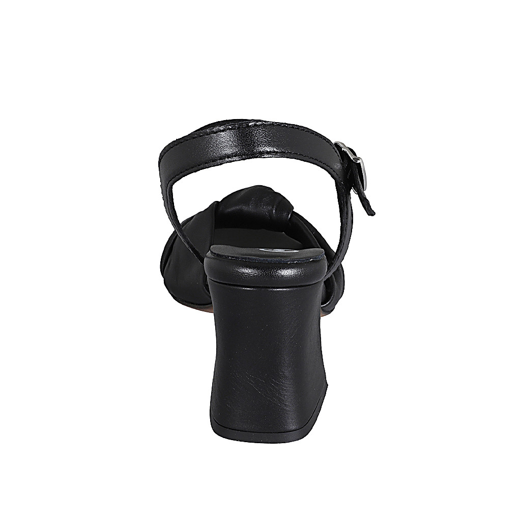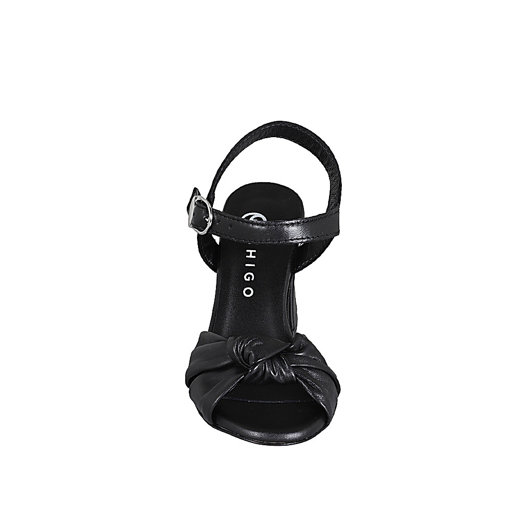 Sandalo da donna con cinturino e nodo in pelle nera tacco 7