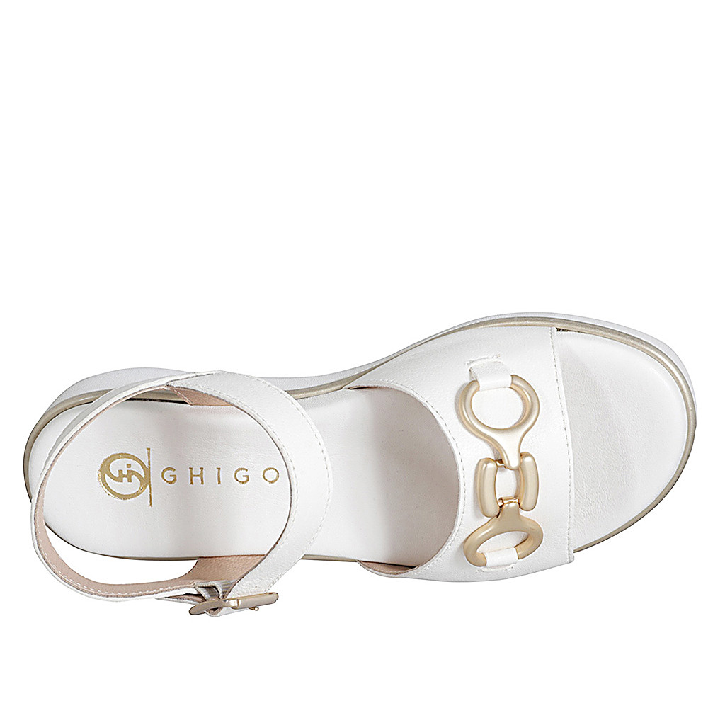 Scarpa aperta da donna con fibbia alla caviglia in camoscio beige tacco 11
