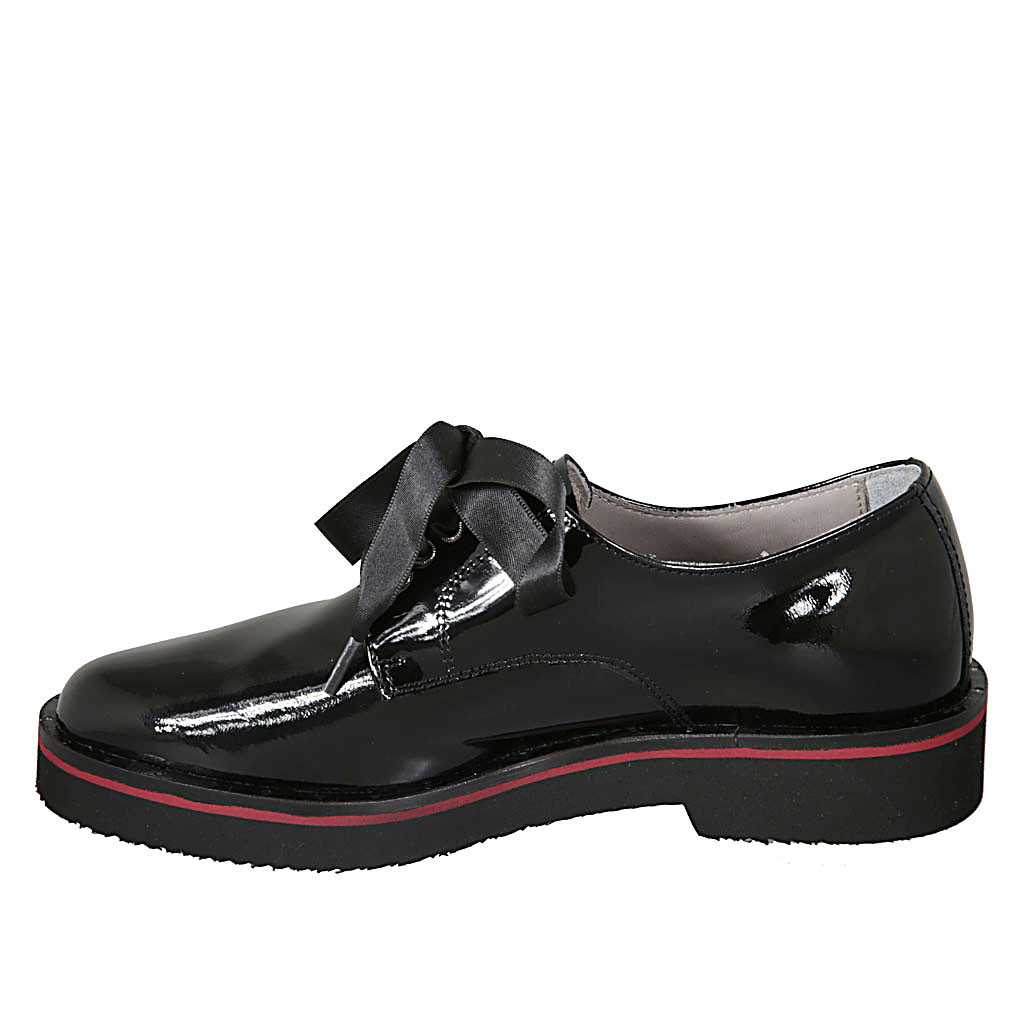 Scarpa derby stringata da donna in vernice nera tacco 3 - Misure disponibili: 32