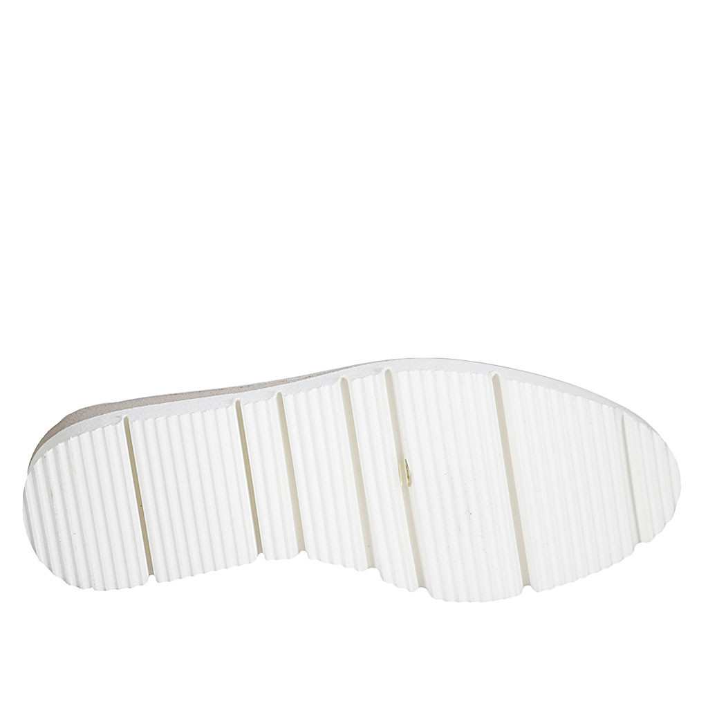 Scarpa accollata da donna in camoscio beige e camoscio stampato laminato platino zeppa 4 - Misure disponibili: 42