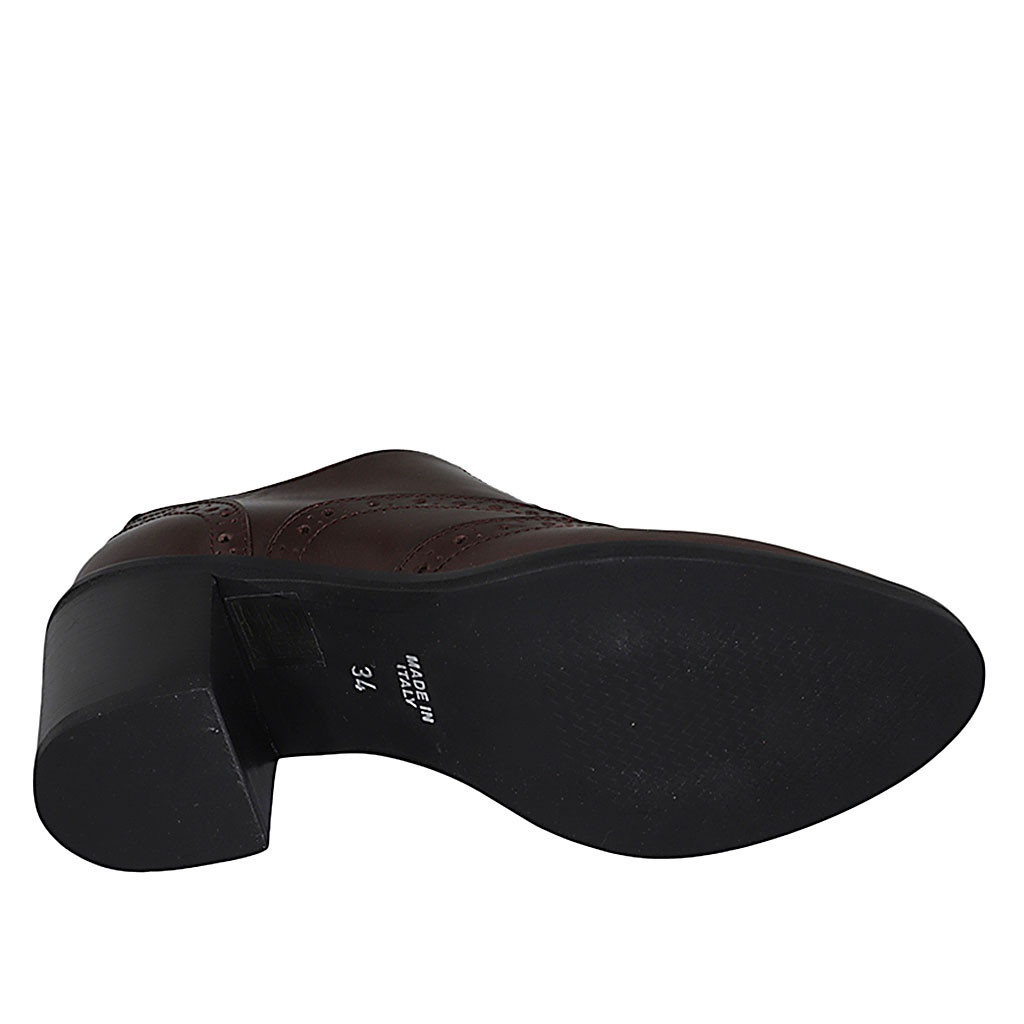Scarpa Oxford stringata da donna in pelle marrone con decorazione a coda di rondine tacco 7 - Misure disponibili: 32