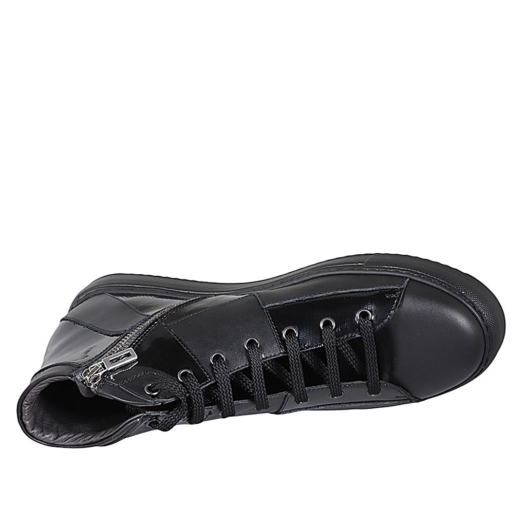 Scarpa stringata da donna con cerniera in pelle e vernice nera zeppa 3 - Misure disponibili: 44