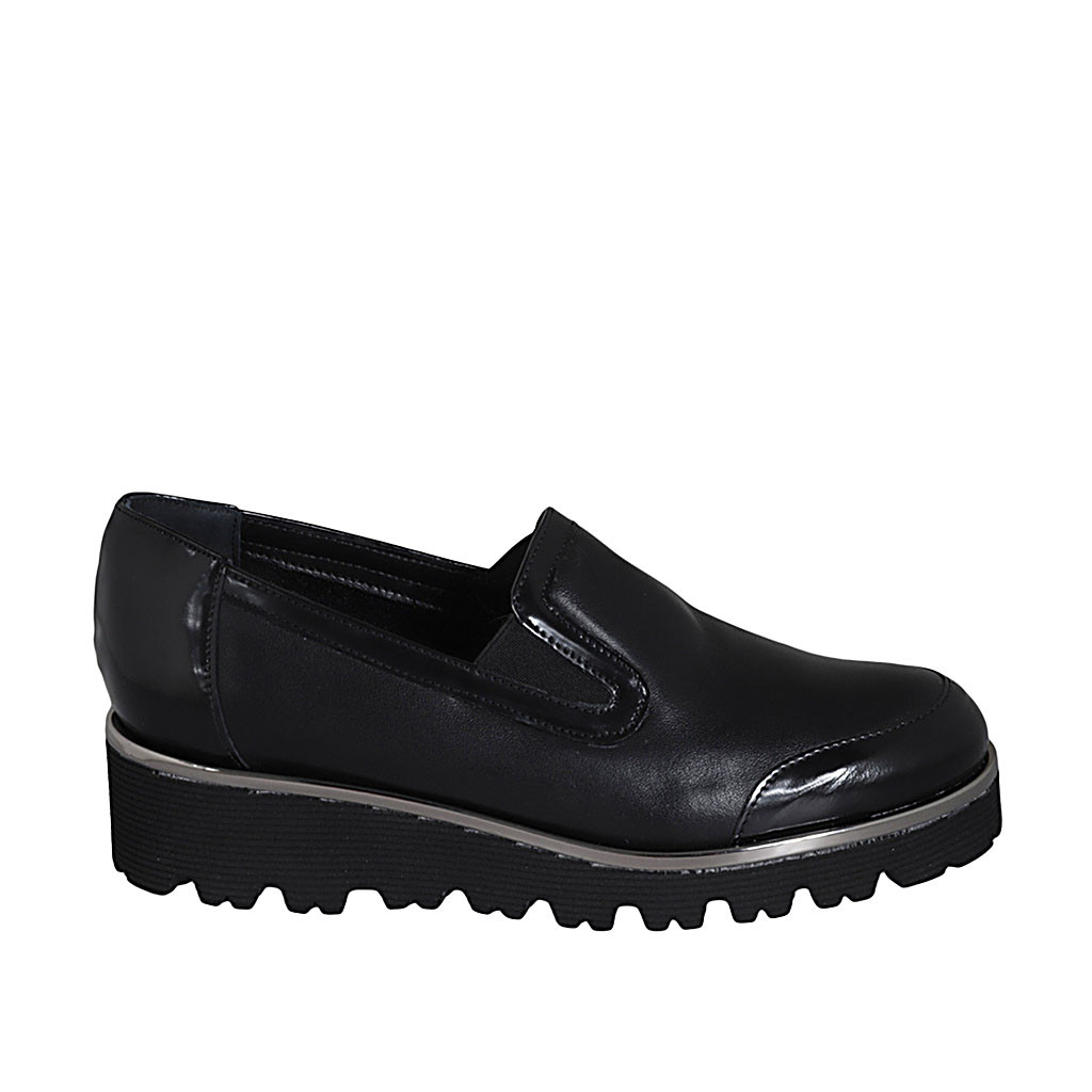 Stivale al ginocchio da donna in pelle ed elasticizzato nero con cerniera tacco 7