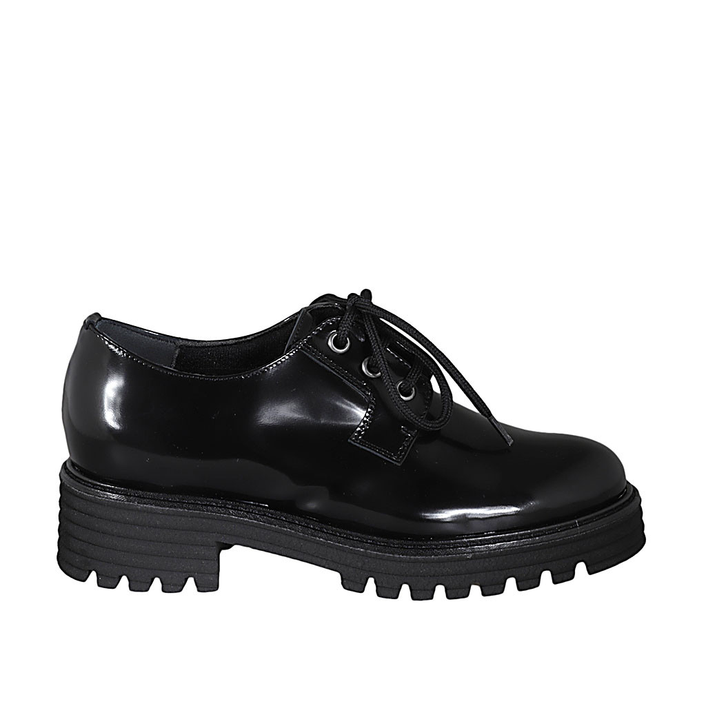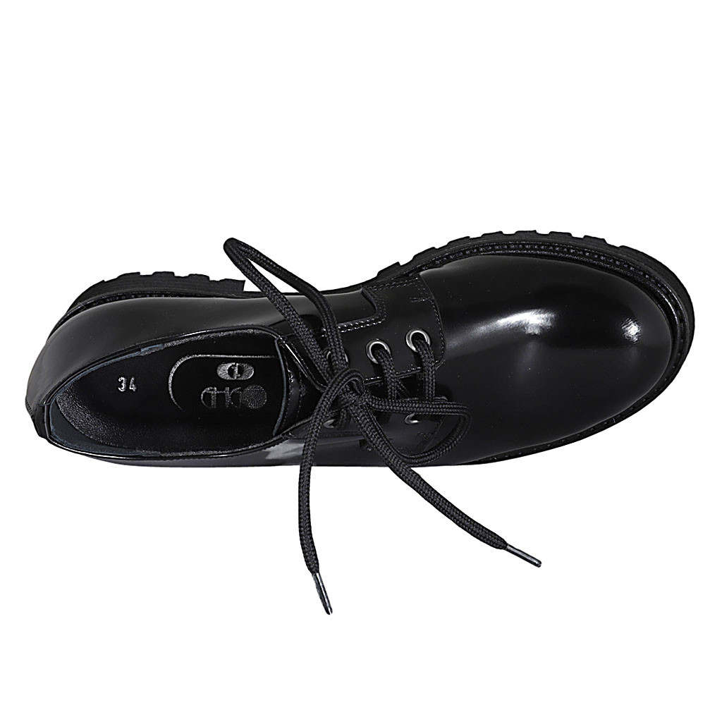 Scarpa stringata derby da donna in vernice nera tacco 4 - Misure disponibili: 45