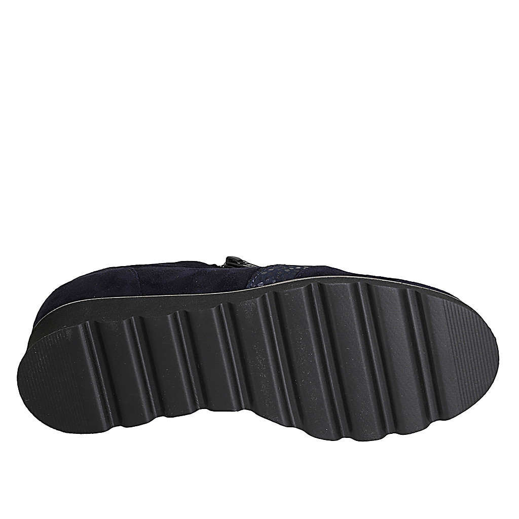 Scarpa stringata da uomo con plantare estraibile in pelle e pelle forata bianca e nabuk blu
