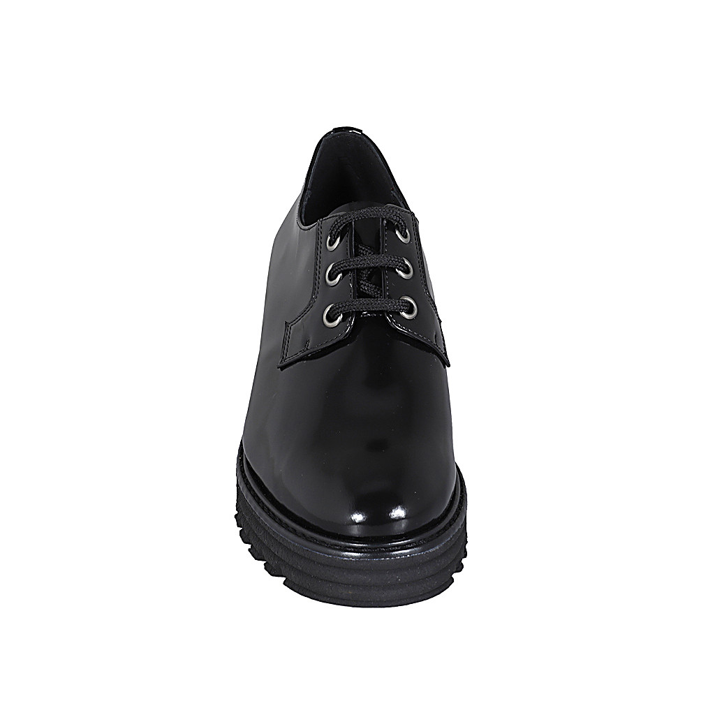 Decolté da donna con cinturino e plantare estraibile in pelle nera zeppa 6