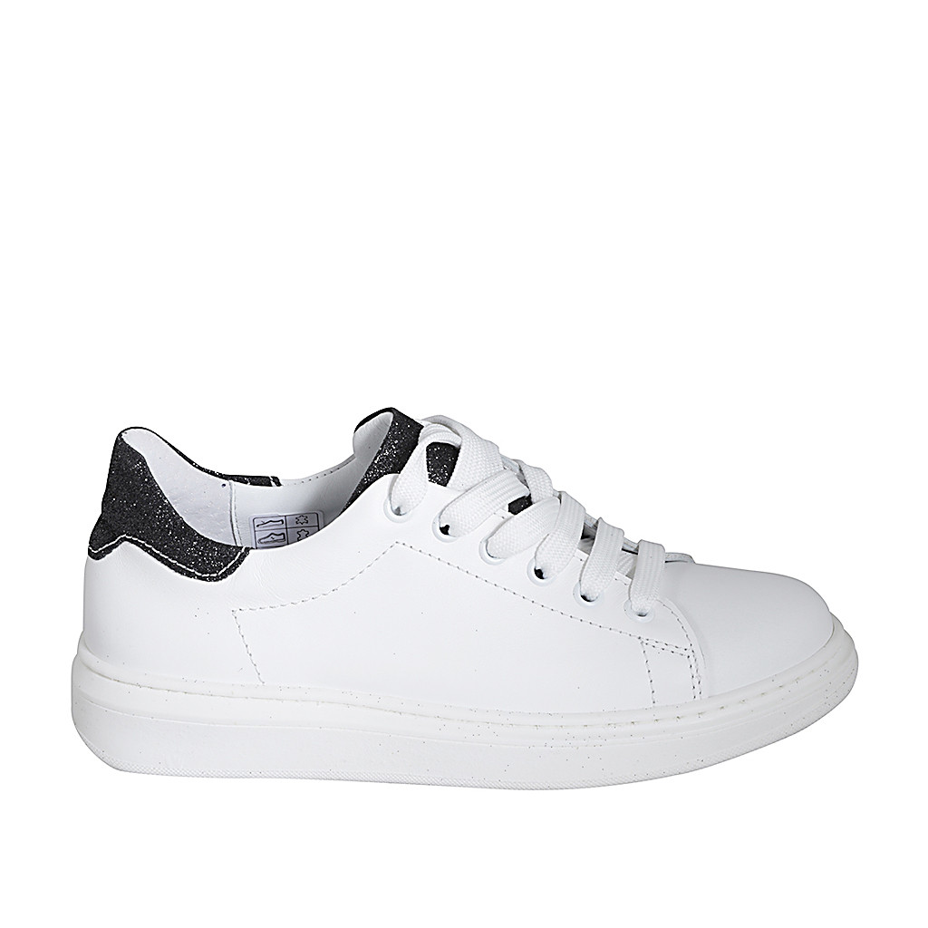 Scarpa stringata con plantare estraibile in pelle bianca e glitterata nera zeppa 3 - Misure disponibili: 32, 35