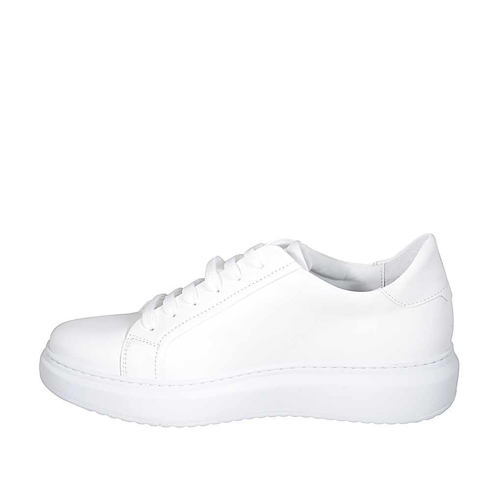 Scarpa stringata da donna in pelle bianca e stampata floreale viola con plantare estraibile zeppa 4