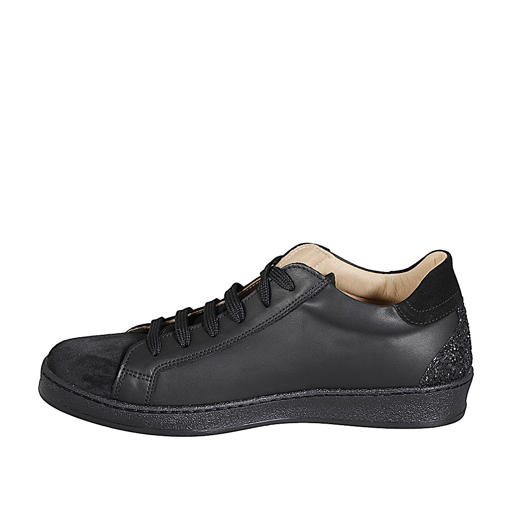 Sneaker stringata da donna con plantare estraibile con glitter in pelle e camoscio nero zeppa 3 - Misure disponibili: 42, 43, 44, 45, 46
