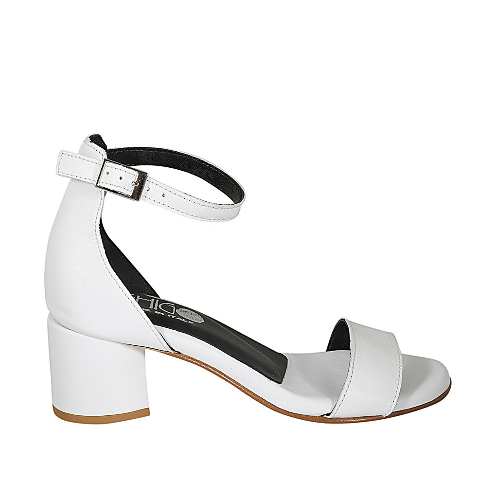 Scarpa aperta da donna con cinturino alla caviglia in pelle bianca tacco 5 - Misure disponibili: 44