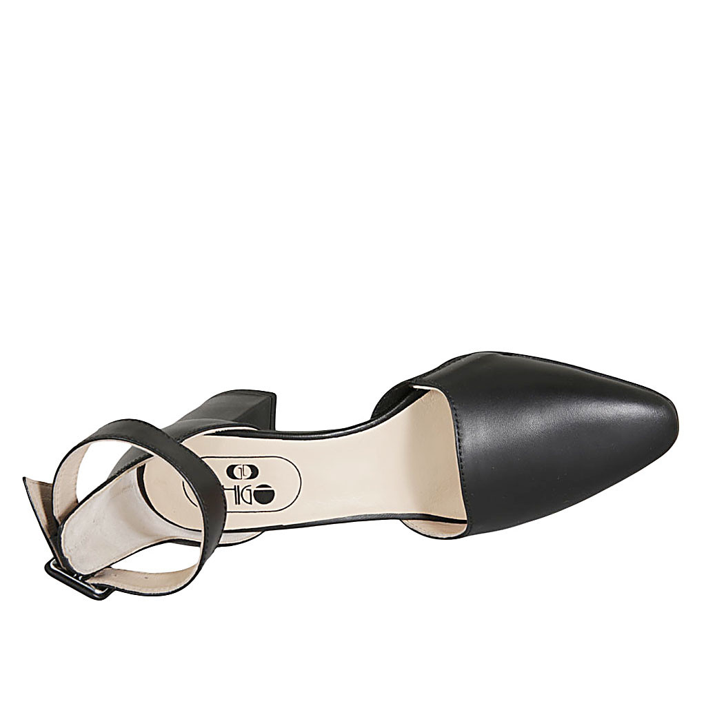 Scarpa aperta a punta da donna con cinturino ed elastico in pelle nera tacco 5 - Misure disponibili: 45