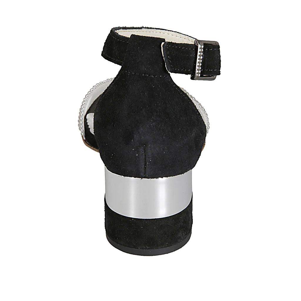 Scarpa aperta da donna con cinturino e glitterato argento in camoscio nero tacco 5 - Misure disponibili: 42