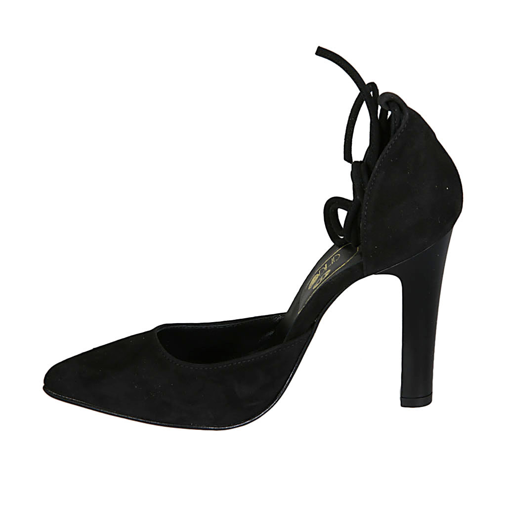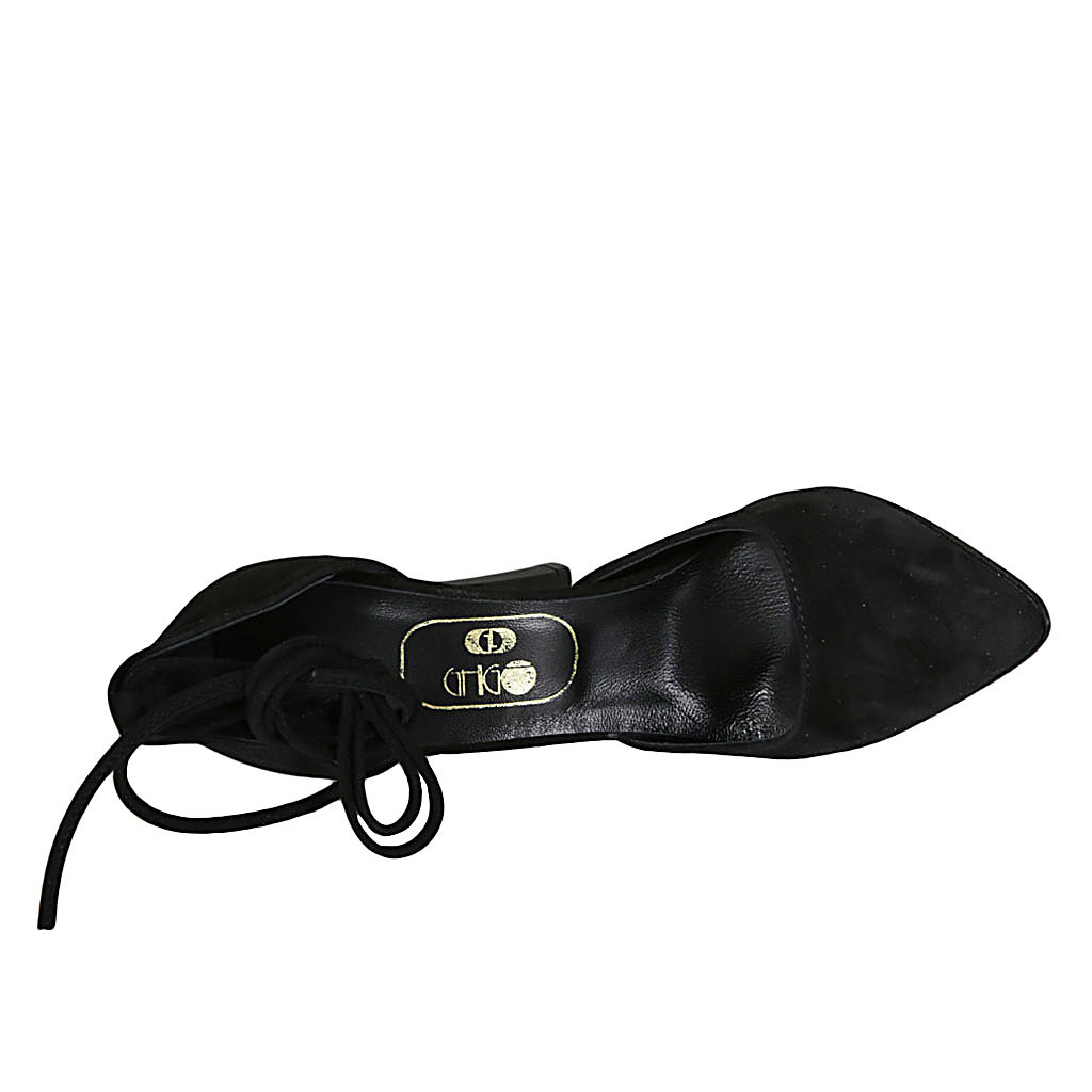 Sandalo da donna in pelle nera con velcro, perline e zeppa 9