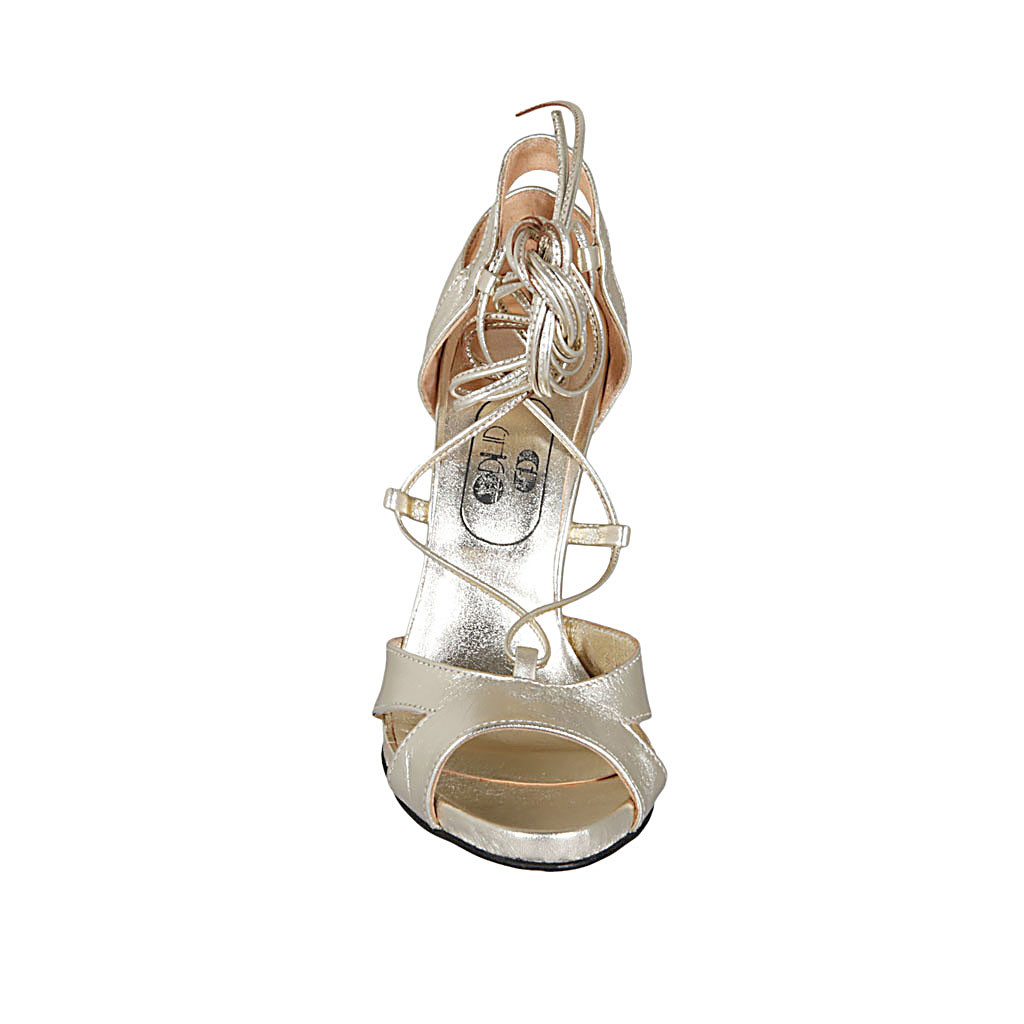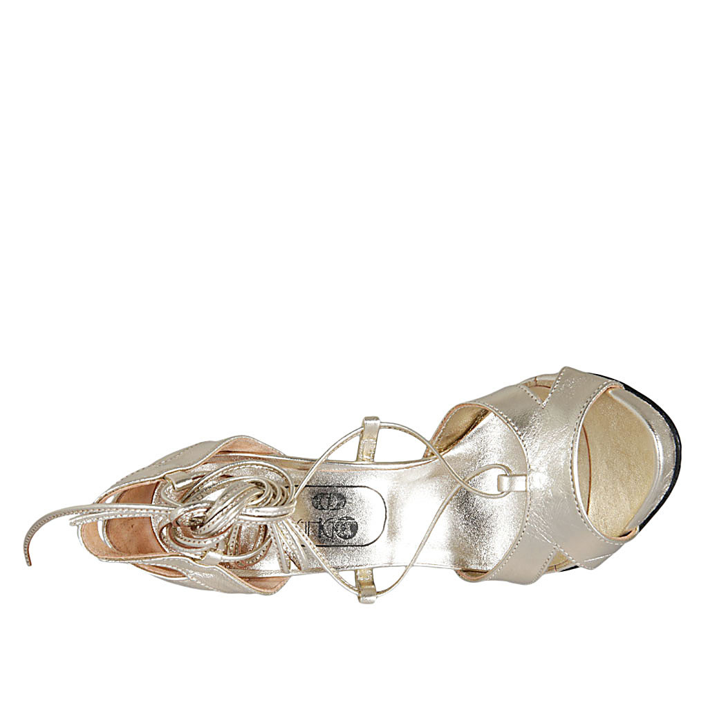 Scarpa aperta da donna con lacci in pelle laminata platino tacco 11 - Misure disponibili: 42, 43