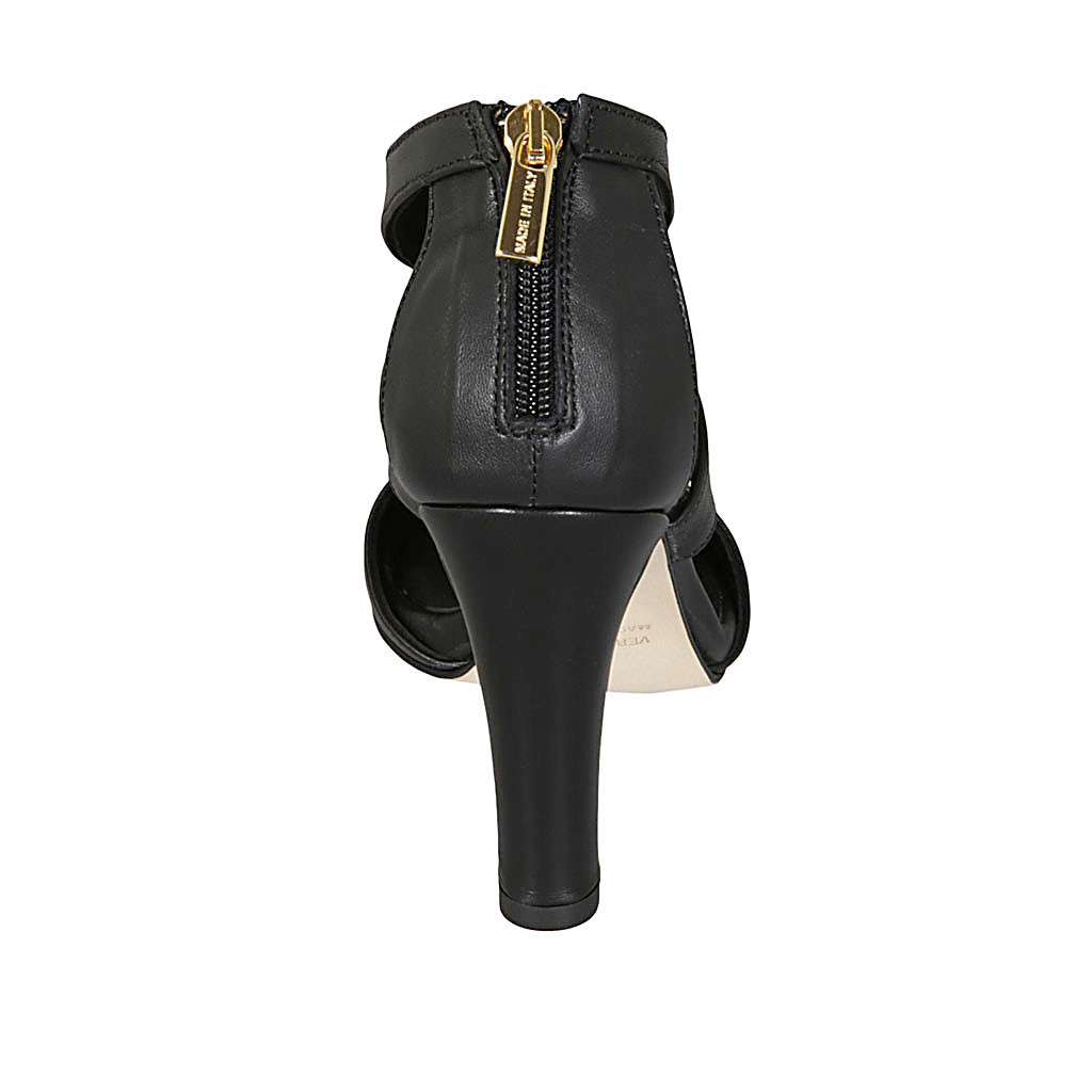 Scarpa aperta da donna con cerniera e plateau in pelle nera tacco 10 - Misure disponibili: 42