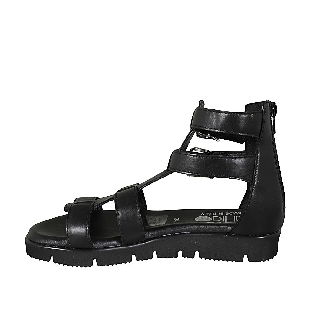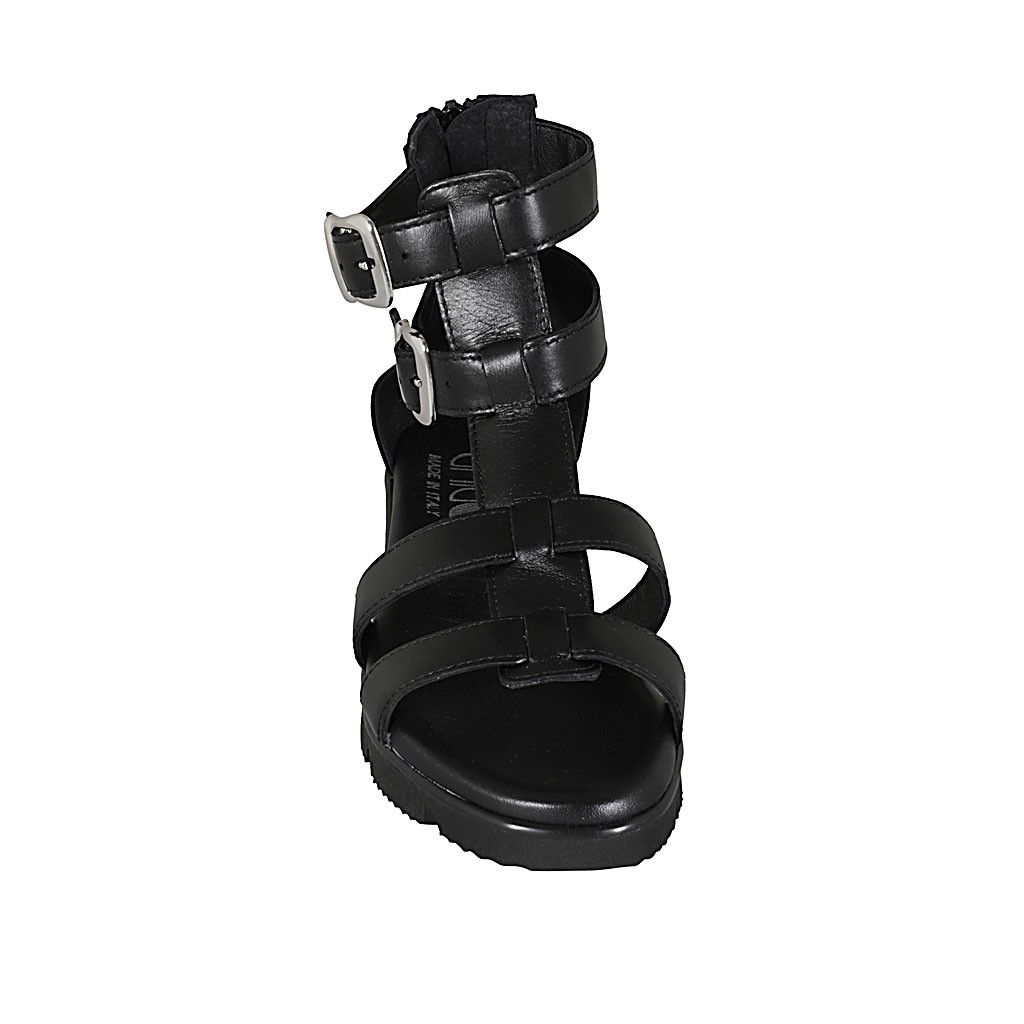 Mary Jane da donna con punta tonda in pelle nera tacco 3