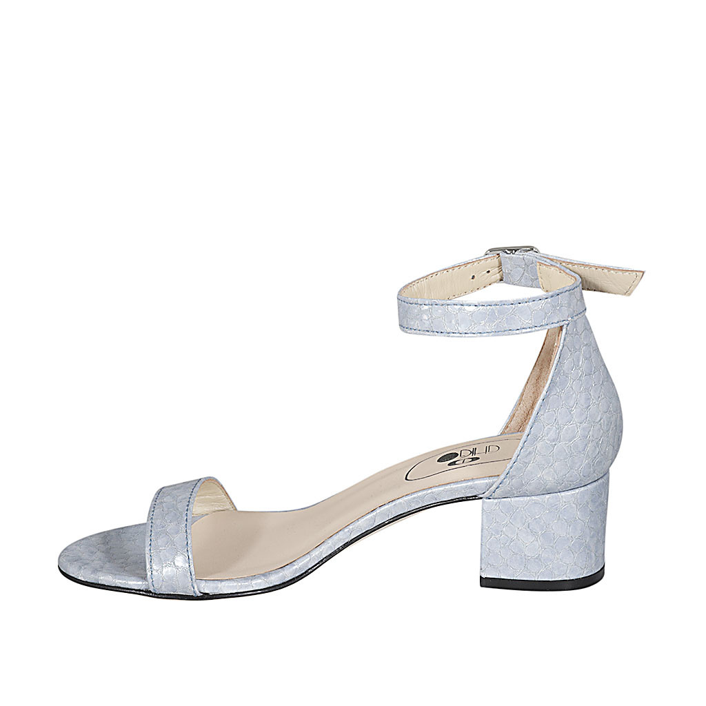 Scarpa aperta da donna con cinturino in vernice stampata azzurra tacco 5