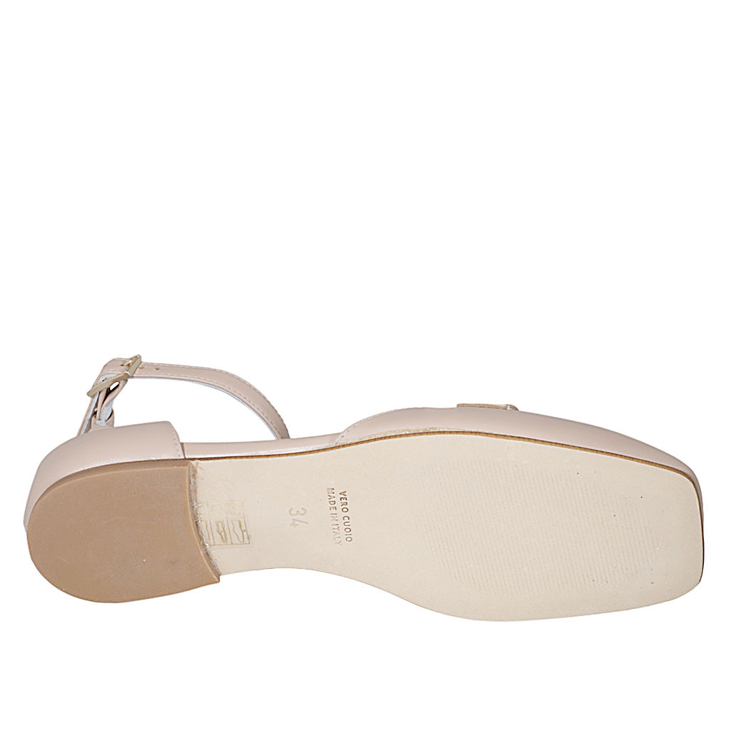 Scarpa aperta con cinturino da donna in pelle nude tacco 1 - Misure disponibili: 42