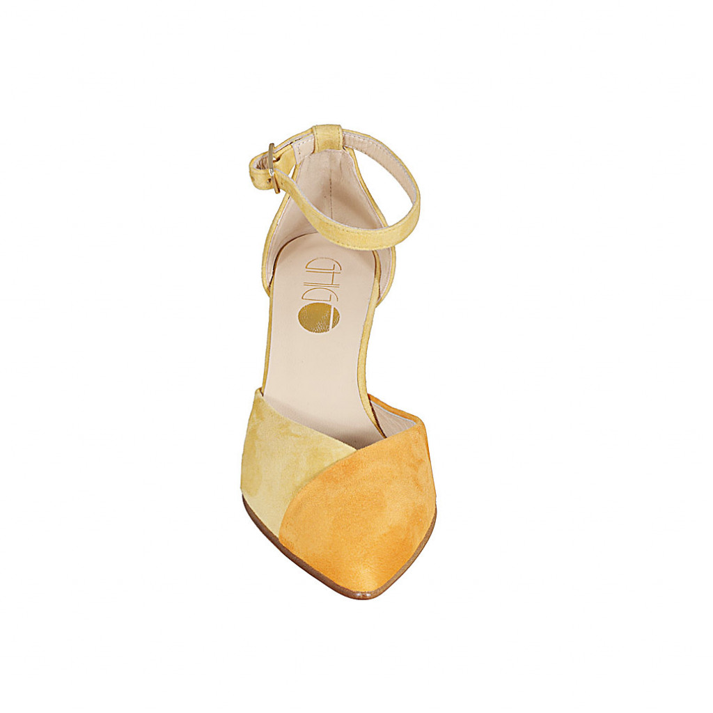 Scarpa aperta a punta da donna con cinturino in camoscio arancione e giallo tacco 6 - Misure disponibili: 42, 43
