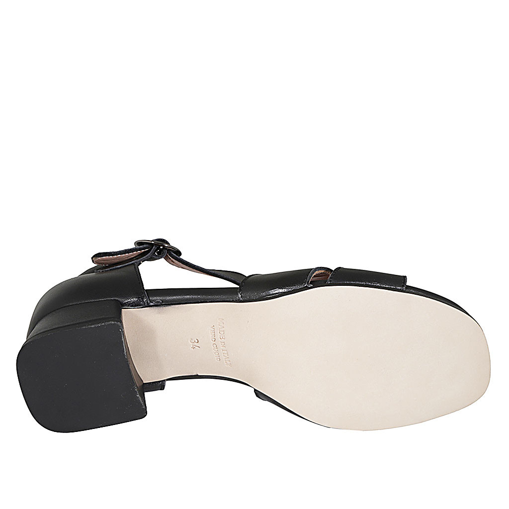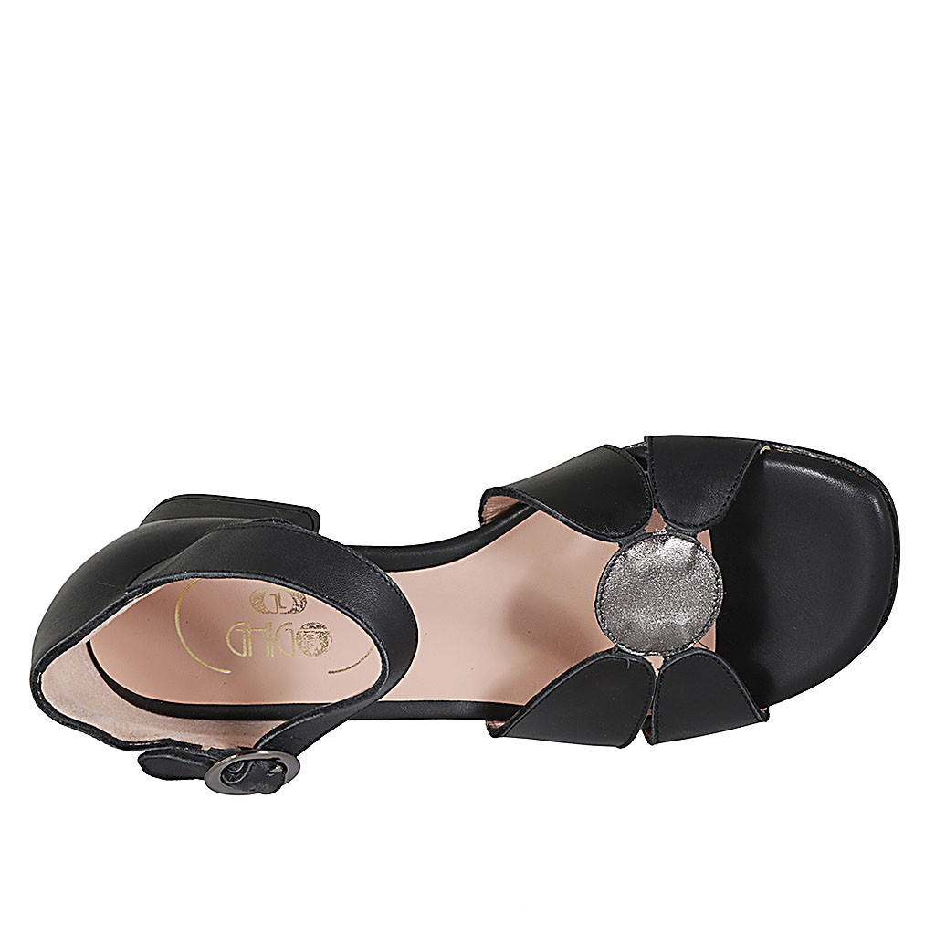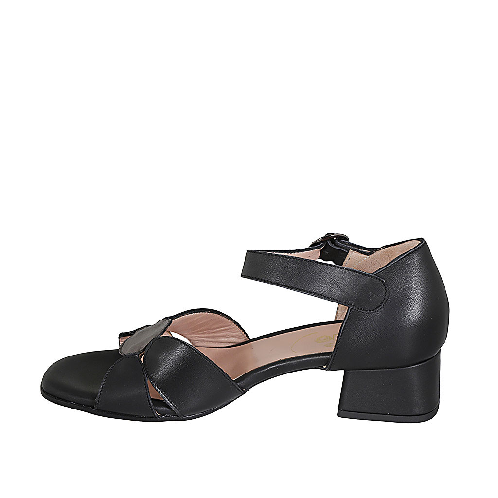 Scarpa aperta da donna con cinturino in pelle nera e grigia tacco 4 - Misure disponibili: 32, 43