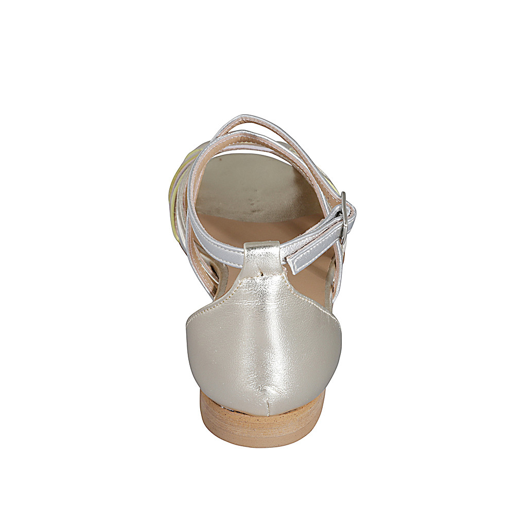 Scarpa aperta da donna con cinturino incrociato in pelle laminata platino, argento, rame tacco 2 - Misure disponibili: 35, 43