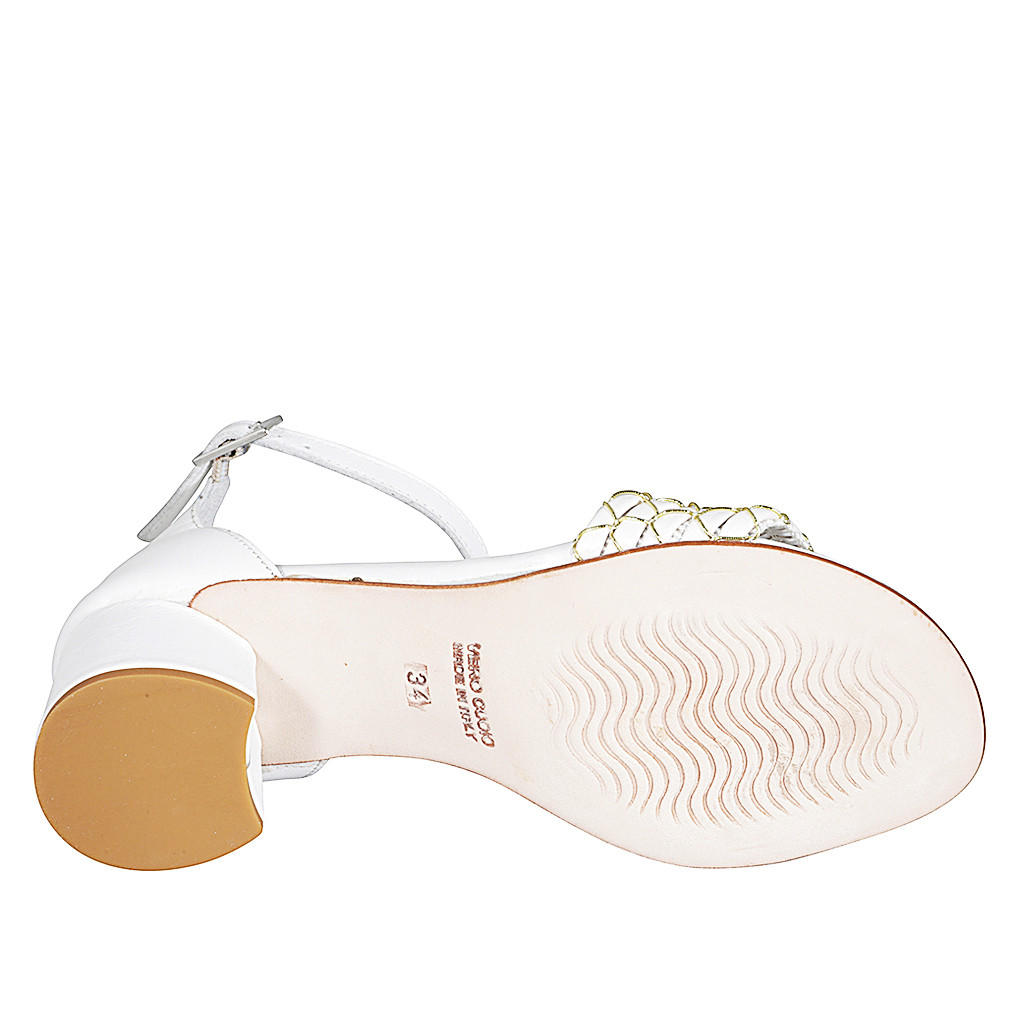 Scarpa aperta da donna con cinturino in pelle bianca con rete oro tacco 5