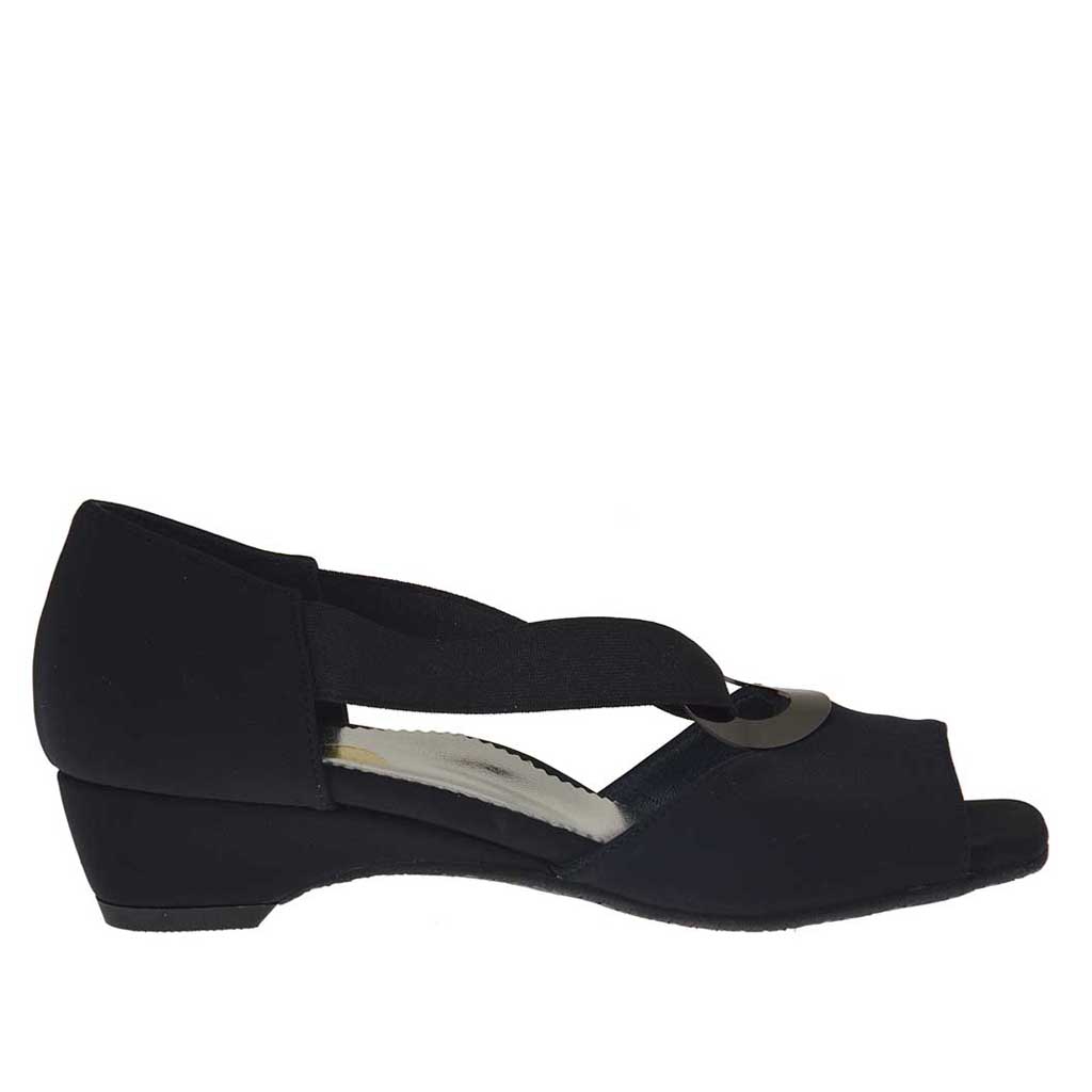 Sabot da donna in camoscio e camoscio forato blu con plateau e zeppa 9