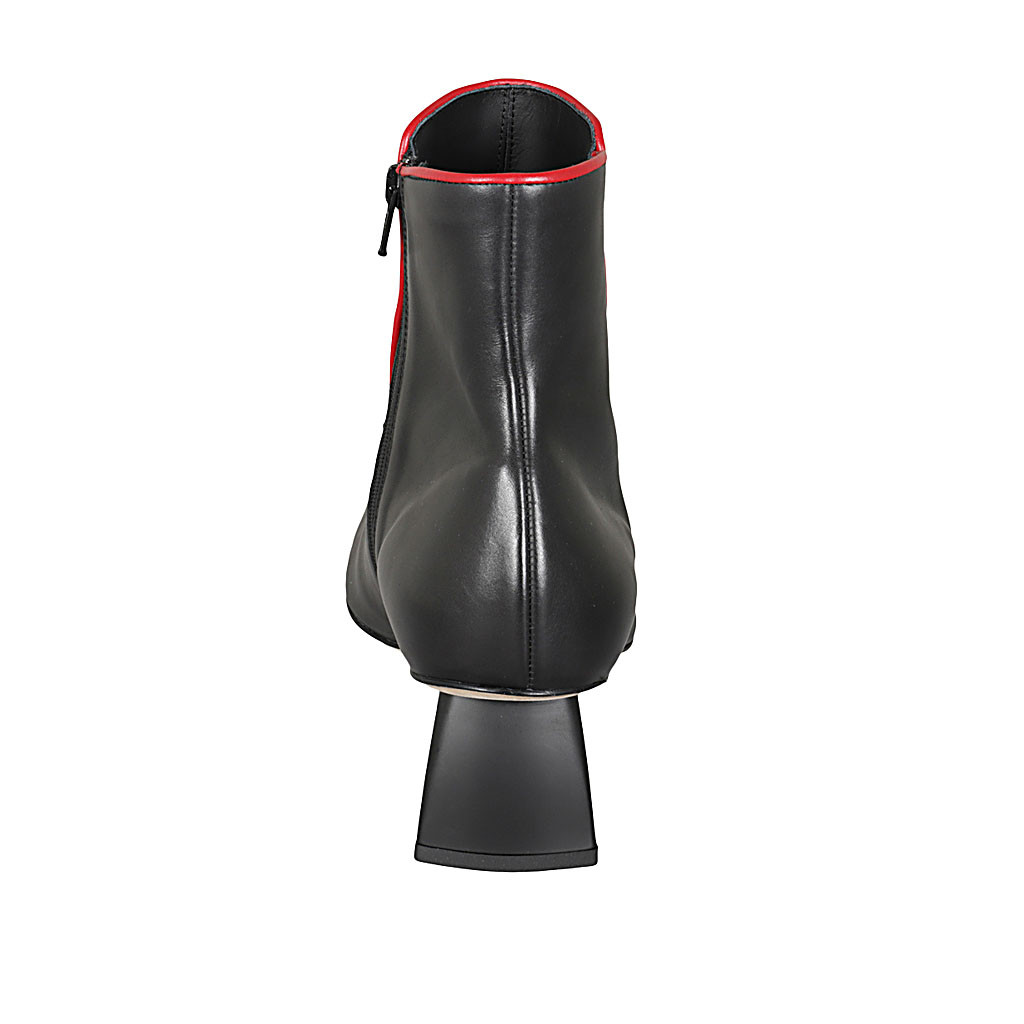 Stivaletto a punta da donna con cerniera in pelle nera e rossa tacco 6
