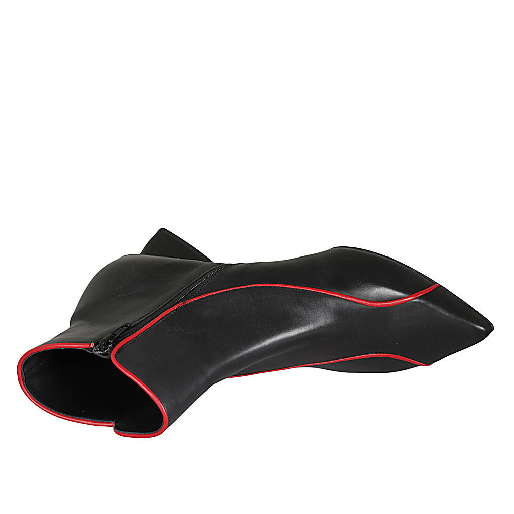 Stivaletto a punta da donna con cerniera in pelle nera e rossa tacco 6 - Misure disponibili: 42