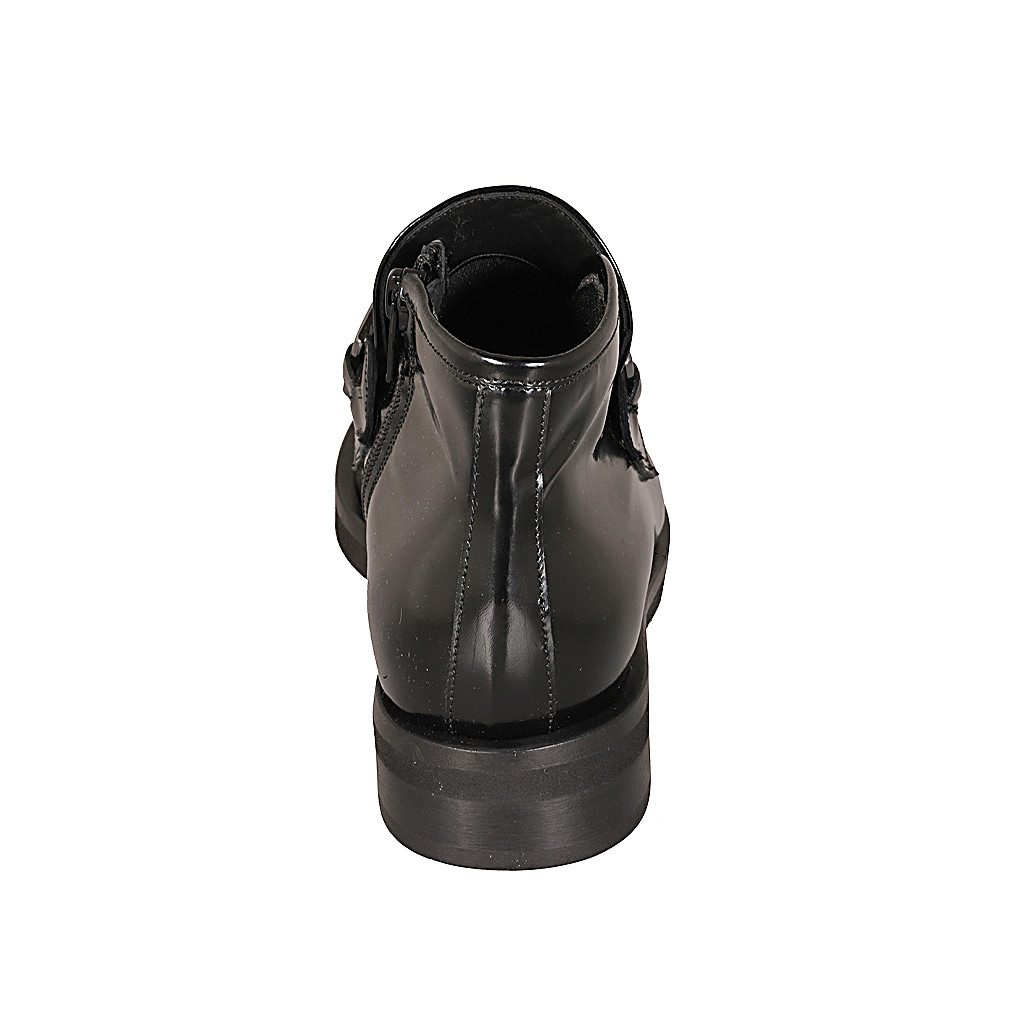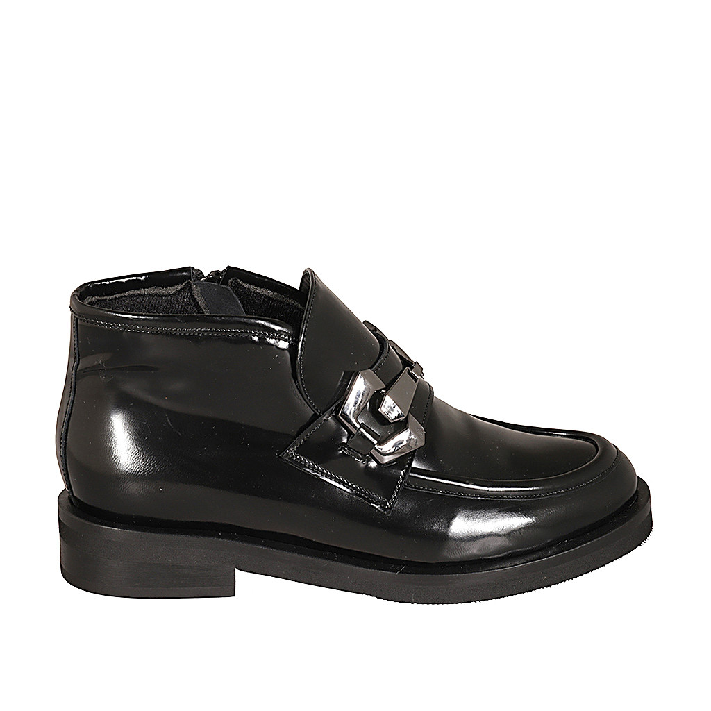 Stivaletto basso da donna con cerniera e accessorio in pelle abrasivata nera tacco 3
