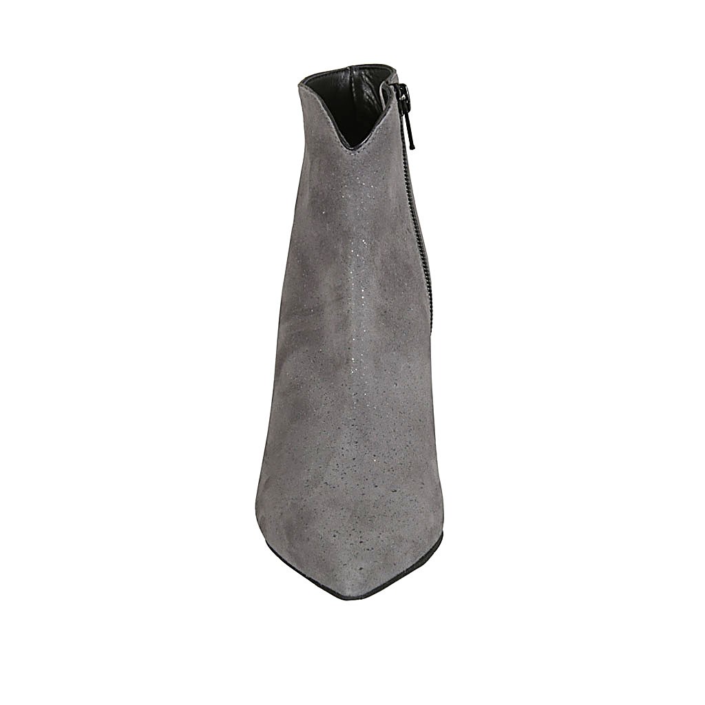 Stivaletto a punta da donna con cerniera in camoscio grigio stampato glitterato tacco 7 - Misure disponibili: 43