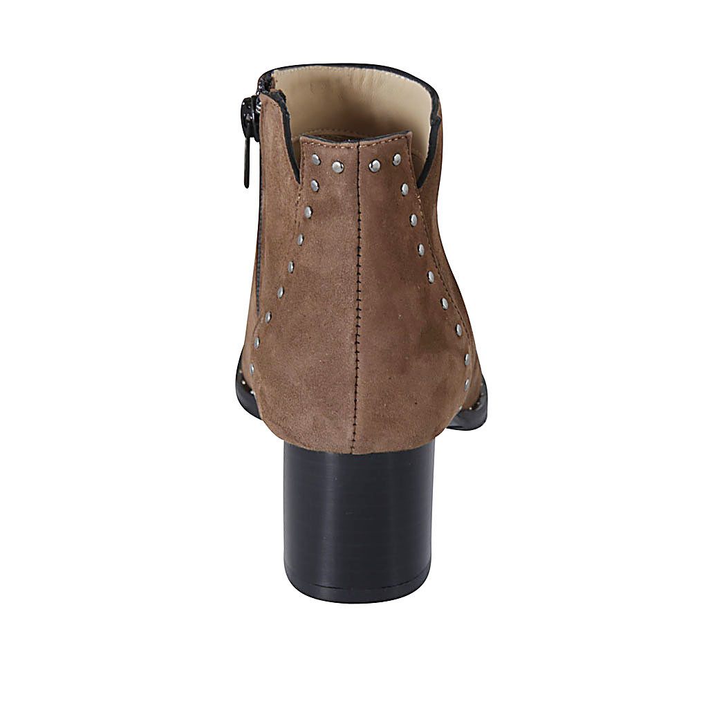 Stivaletto a punta da donna con cerniera e borchie in camoscio marrone tacco 5 - Misure disponibili: 42