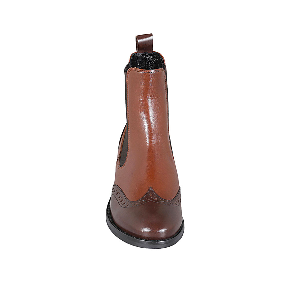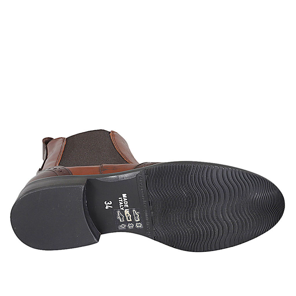 Stivaletto da donna in pelle cuoio e marrone con elastici e lavorazione a coda di rondine tacco 3 - Misure disponibili: 32, 46