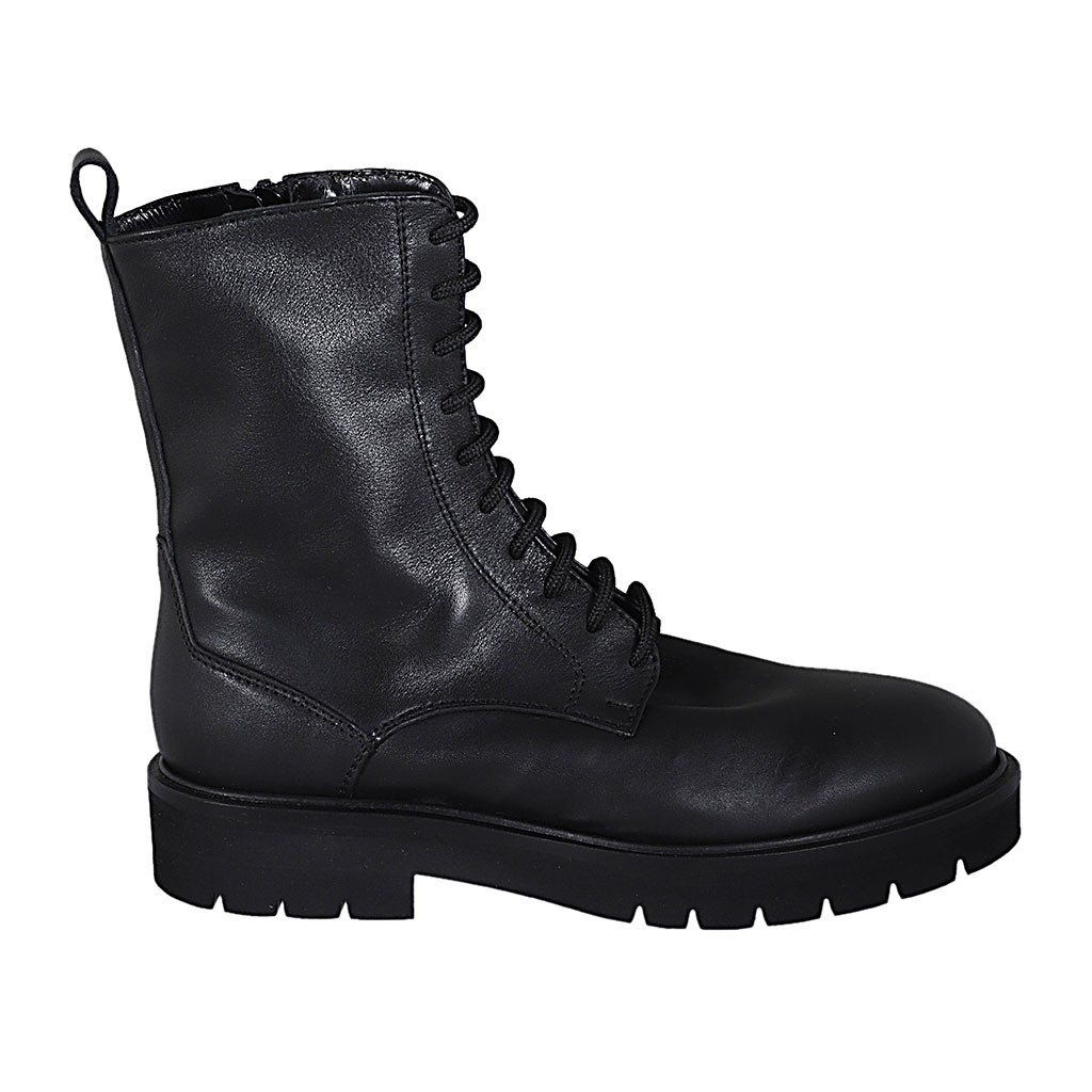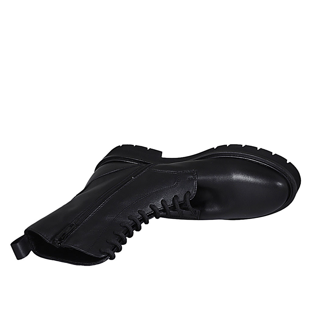 Stivaletto modello anfibio stringato da donna con cerniera in pelle nera tacco 3 - Misure disponibili: 32, 33, 44