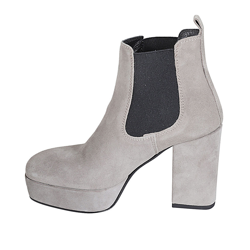 Stivaletto da donna con elastici e plateau in camoscio grigio tacco 10
