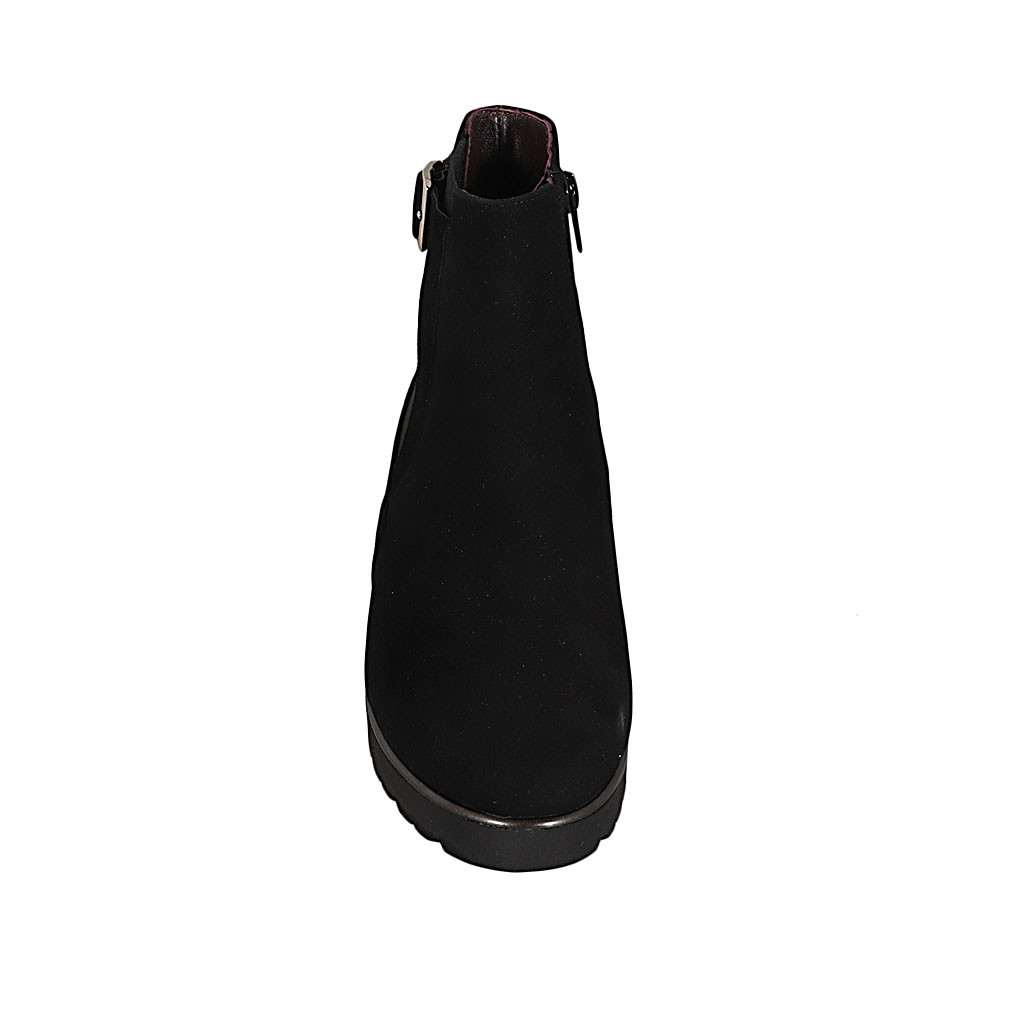Stivaletto stringato da donna con cerniera, borchie e fibbia in camoscio grigio tacco 3