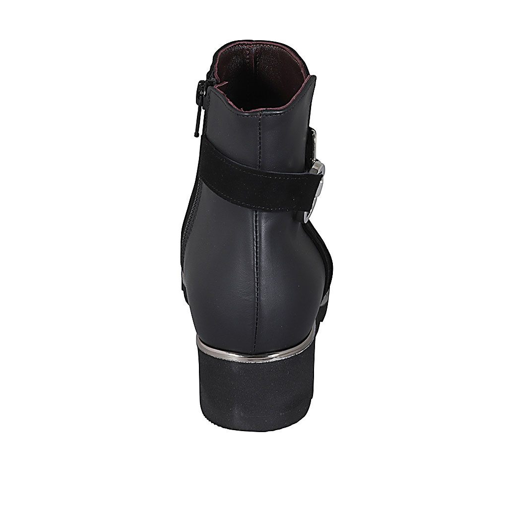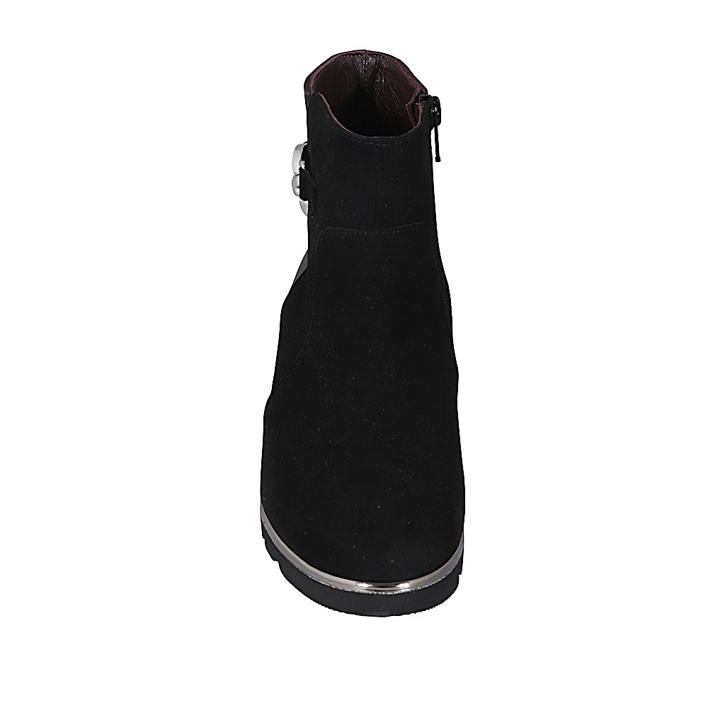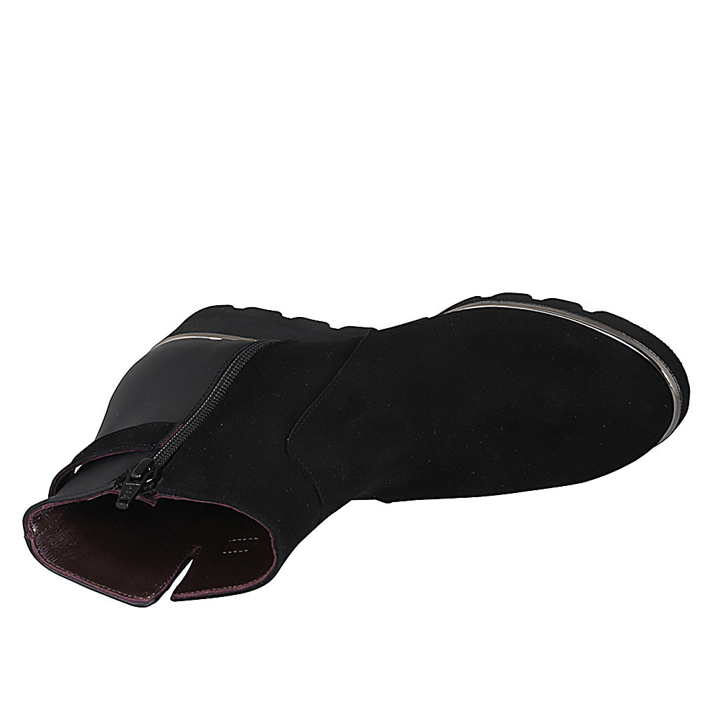 Stivaletto da donna con plantare estraibile, cerniera e accessorio in camoscio e pelle nera zeppa 4 - Misure disponibili: 42