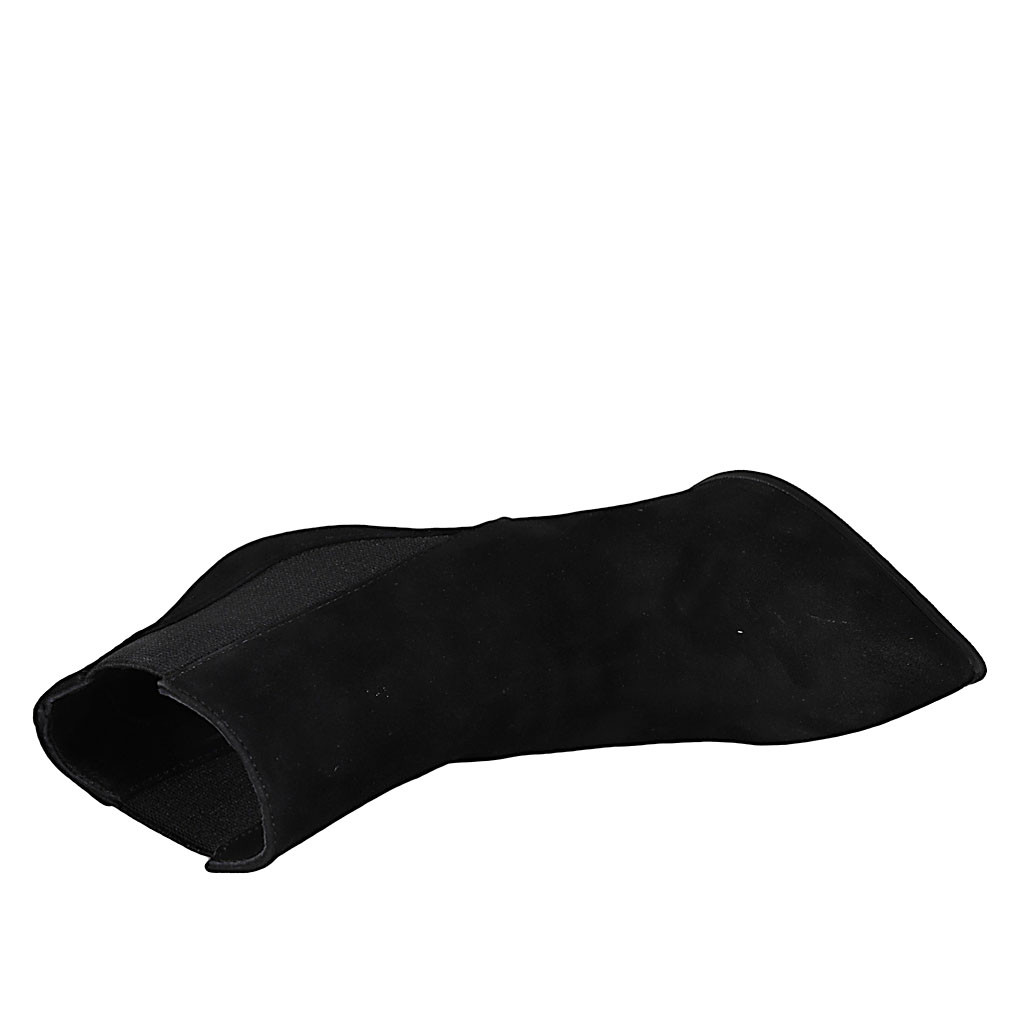 Decolté da donna con fiori, cinturini incrociati e plateau in camoscio nero e taupe tacco 15