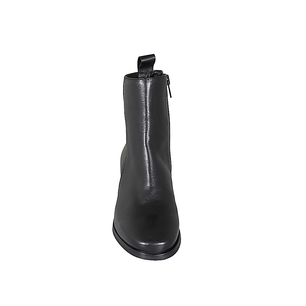 Stivaletto con cerniera e punta squadrata da donna in pelle nera tacco 4
