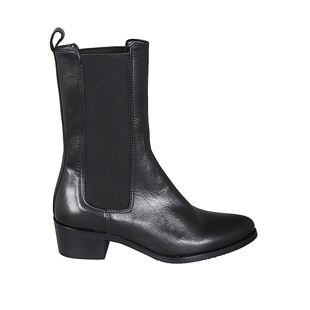 Stivaletto da donna con cerniera e elastico in pelle forata color cuoio tacco 7