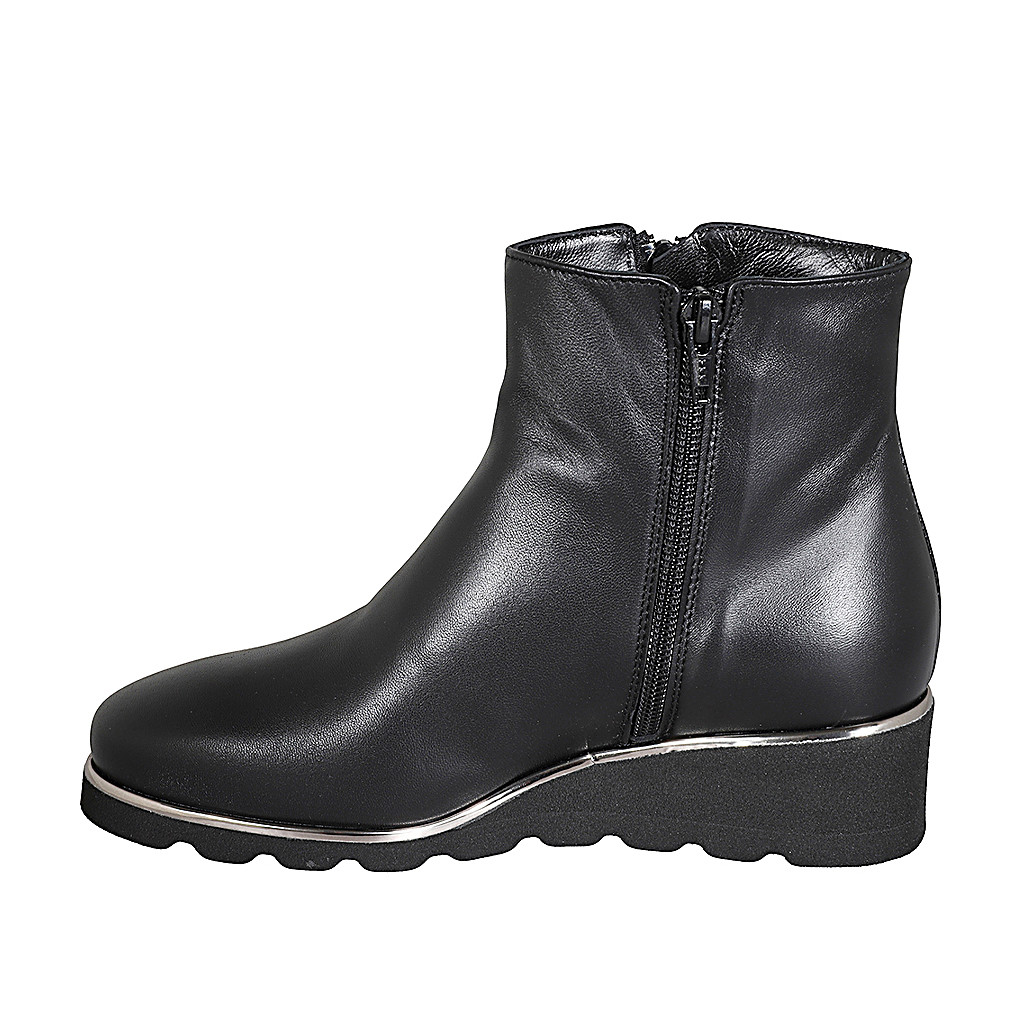 Stivaletto da donna in pelle nera con cerniere e plantare estraibile zeppa 4
