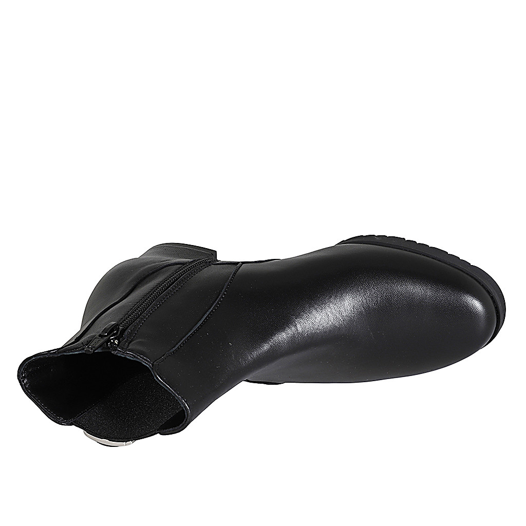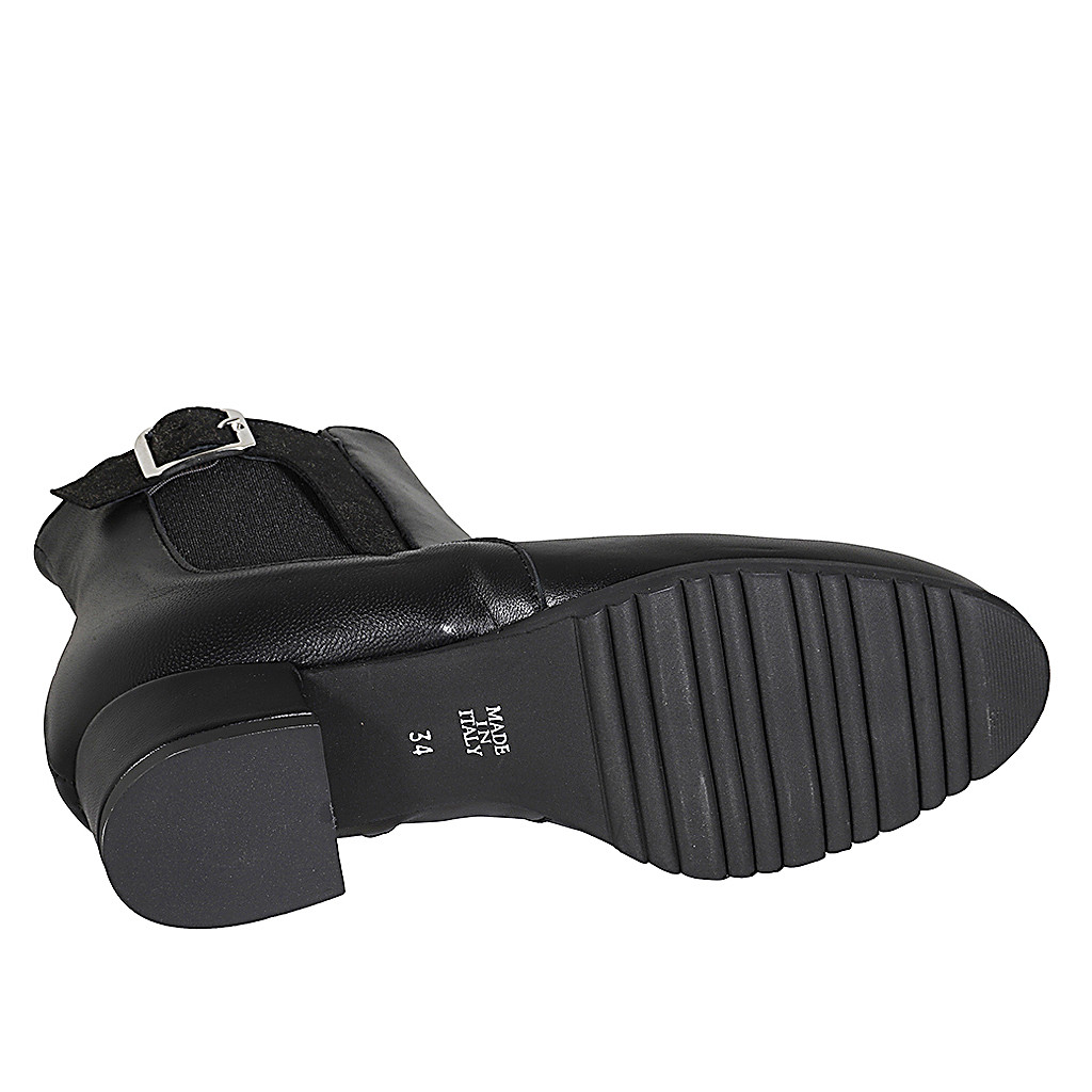 Stivaletto da donna con plantare estraibile, cerniera, elastico e fibbia in pelle nera e laminata carbone tacco 3 - Misure disponibili: 31, 32, 42, 45